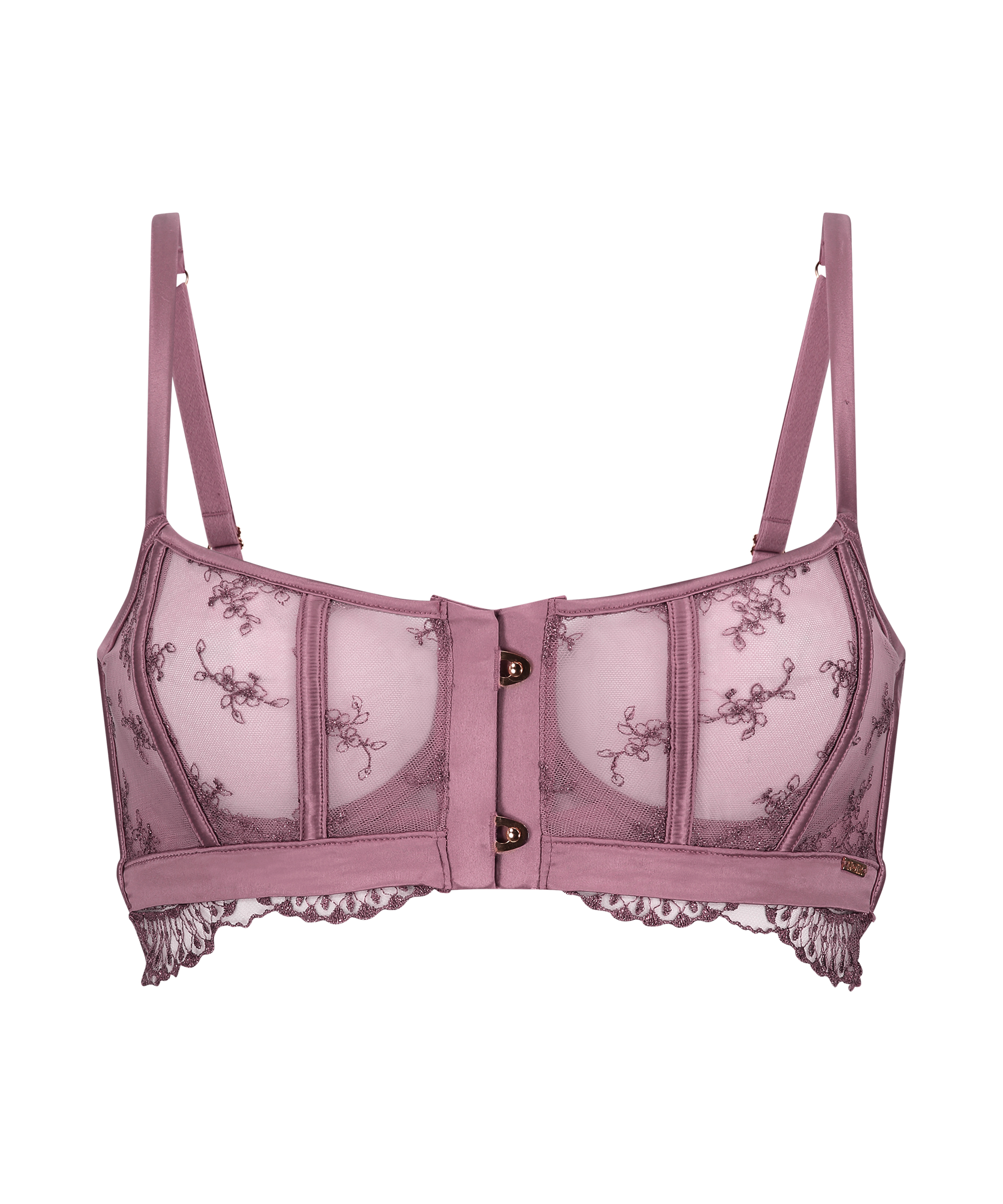 This bra will look great on you! It is finished with lace and mesh and has a fastening at the front. Combine with the matching items for a complete look!