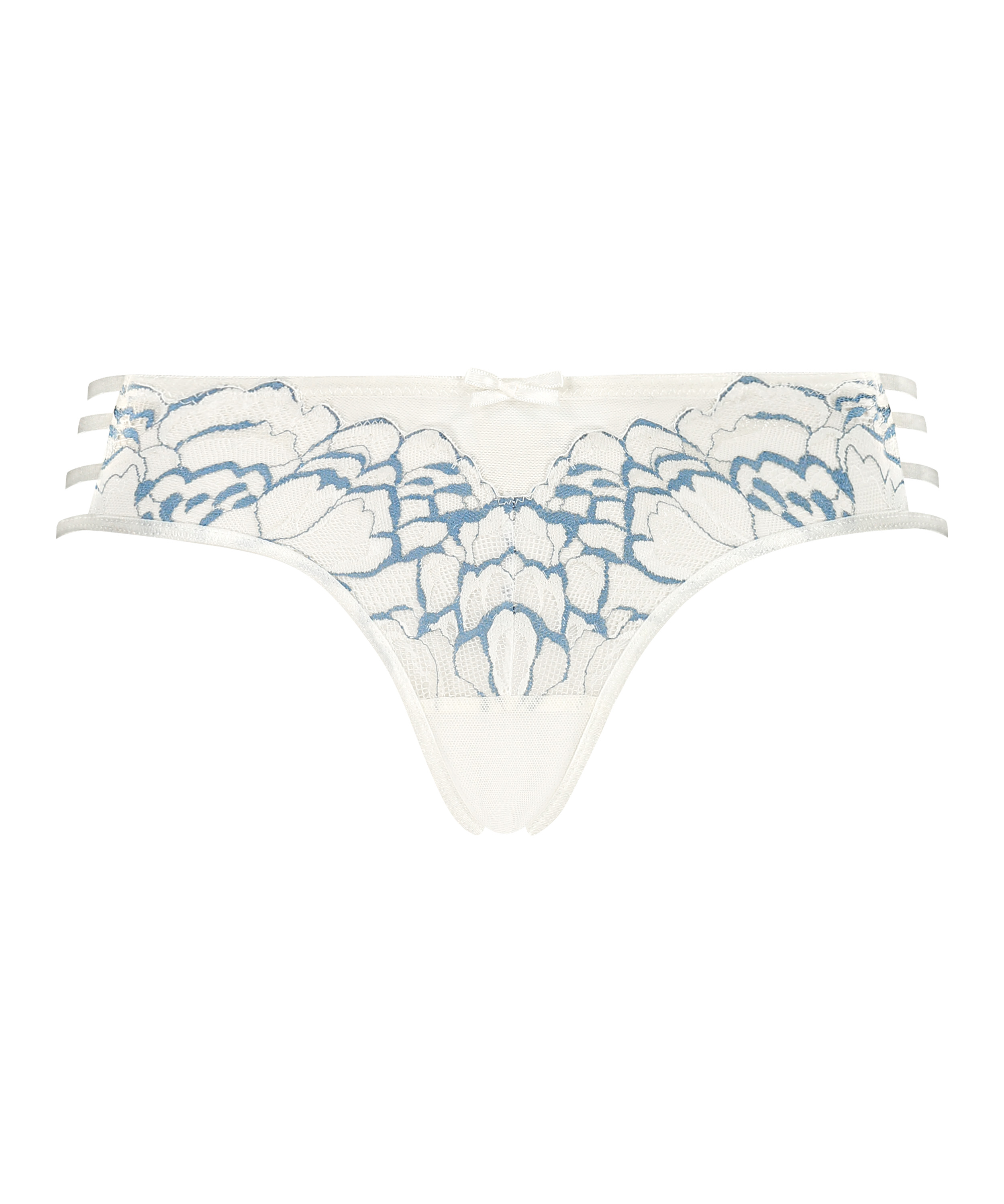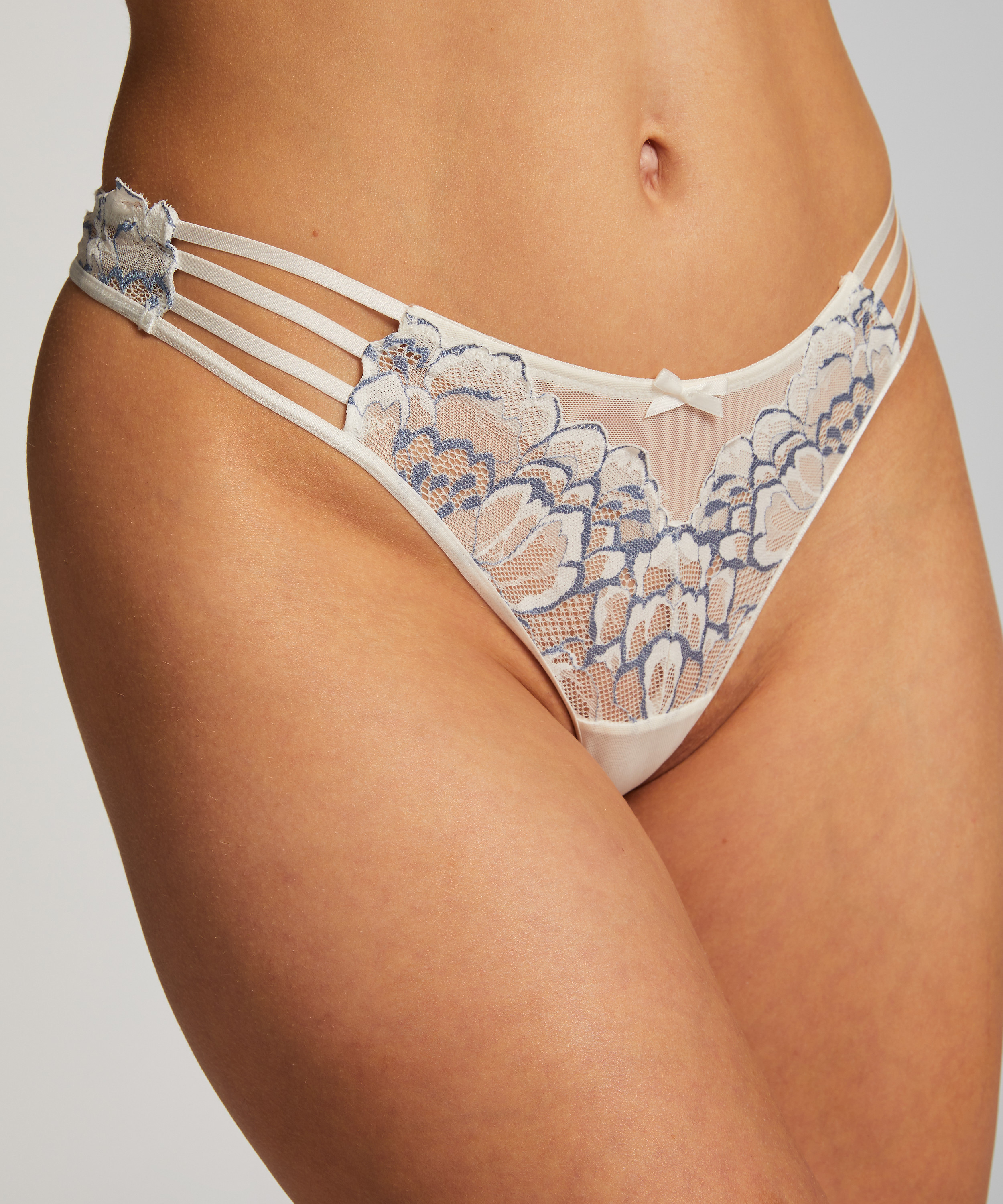 Introducing our essential yet undeniably sexy thong! Featuring beautiful embroidered fabric in the front delicately finished with a charming bow, this piece exudes elegance and allure. The back is crafted from breathable mesh, while sexy strappy details on the side add an extra touch of seduction. Pair it effortlessly with your favorite bra to complete your lingerie ensemble!