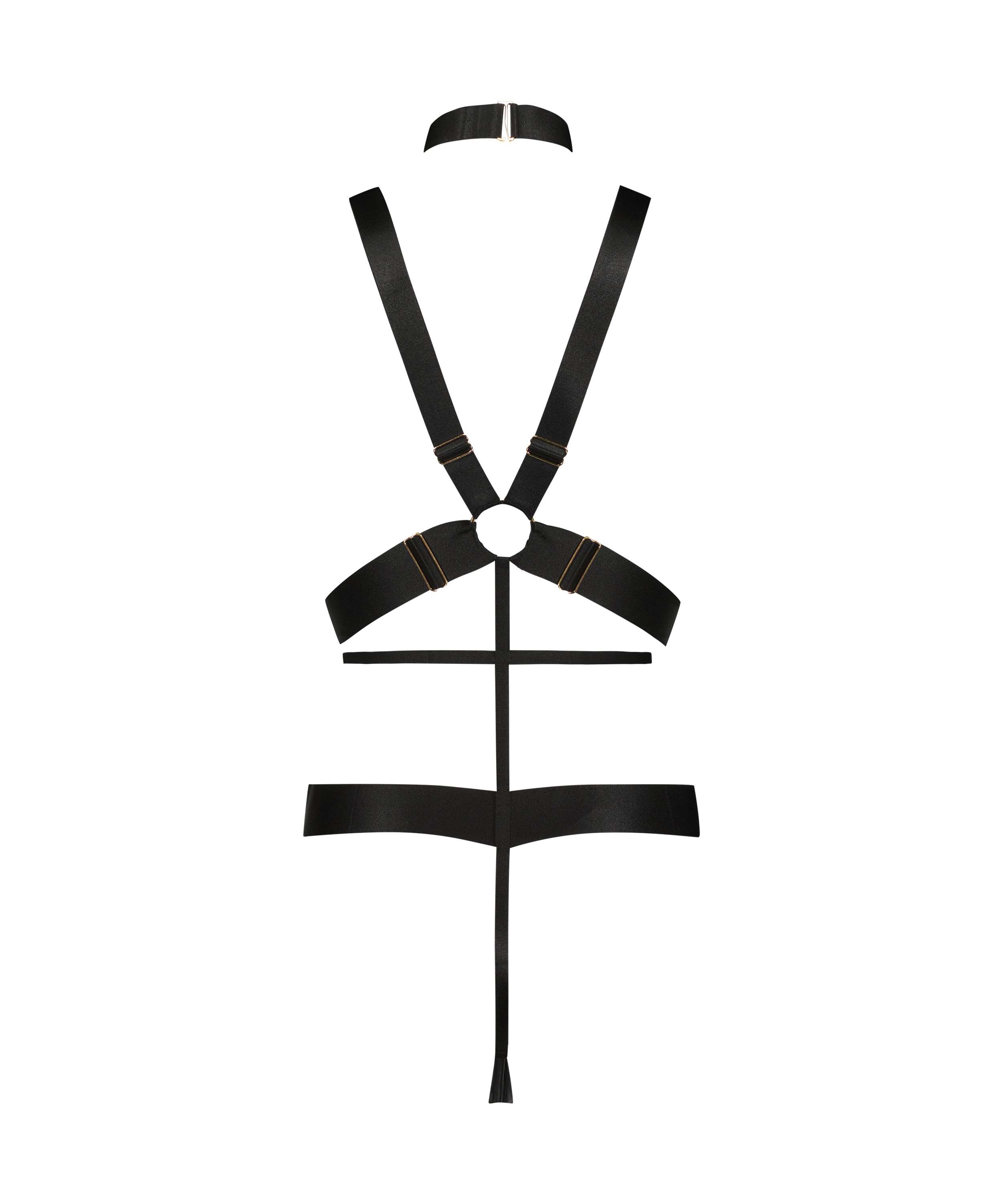 Unleash your passion with this bodysuit! The sexy bodysuit has lots of strappy details, with a frontal zipper closure. Don't forget about the removable choker necklace and open crotch. Part of our sexy Private collection.