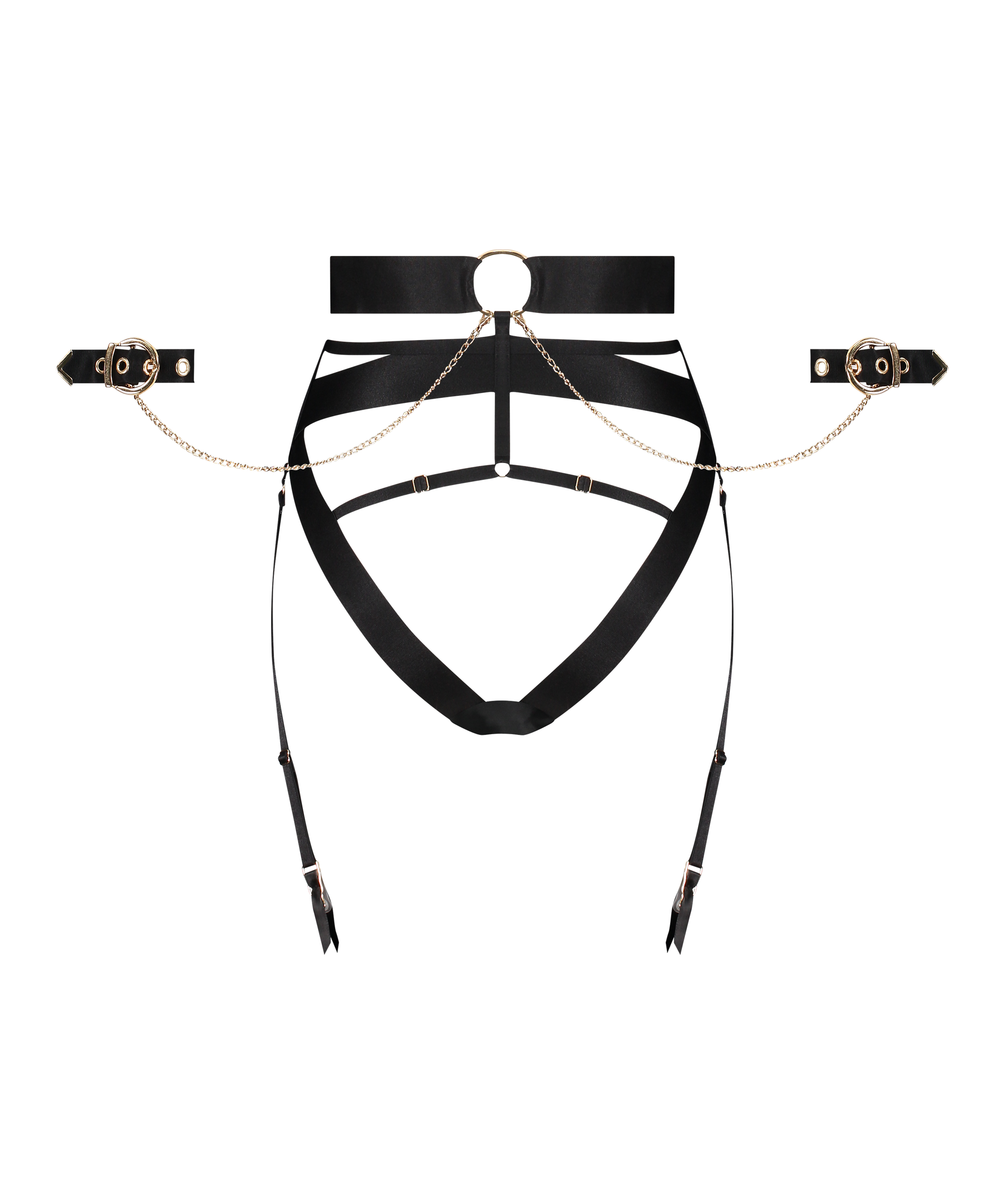 Feel sexy in this steaming brazilian! With sexy lace details on the front and an open back. There are lots of strappy details for an even sexier look. You can't forget about the removable strappy handcuffs made to add an extra level of spicy. Find the matching bralette to complete the set.
