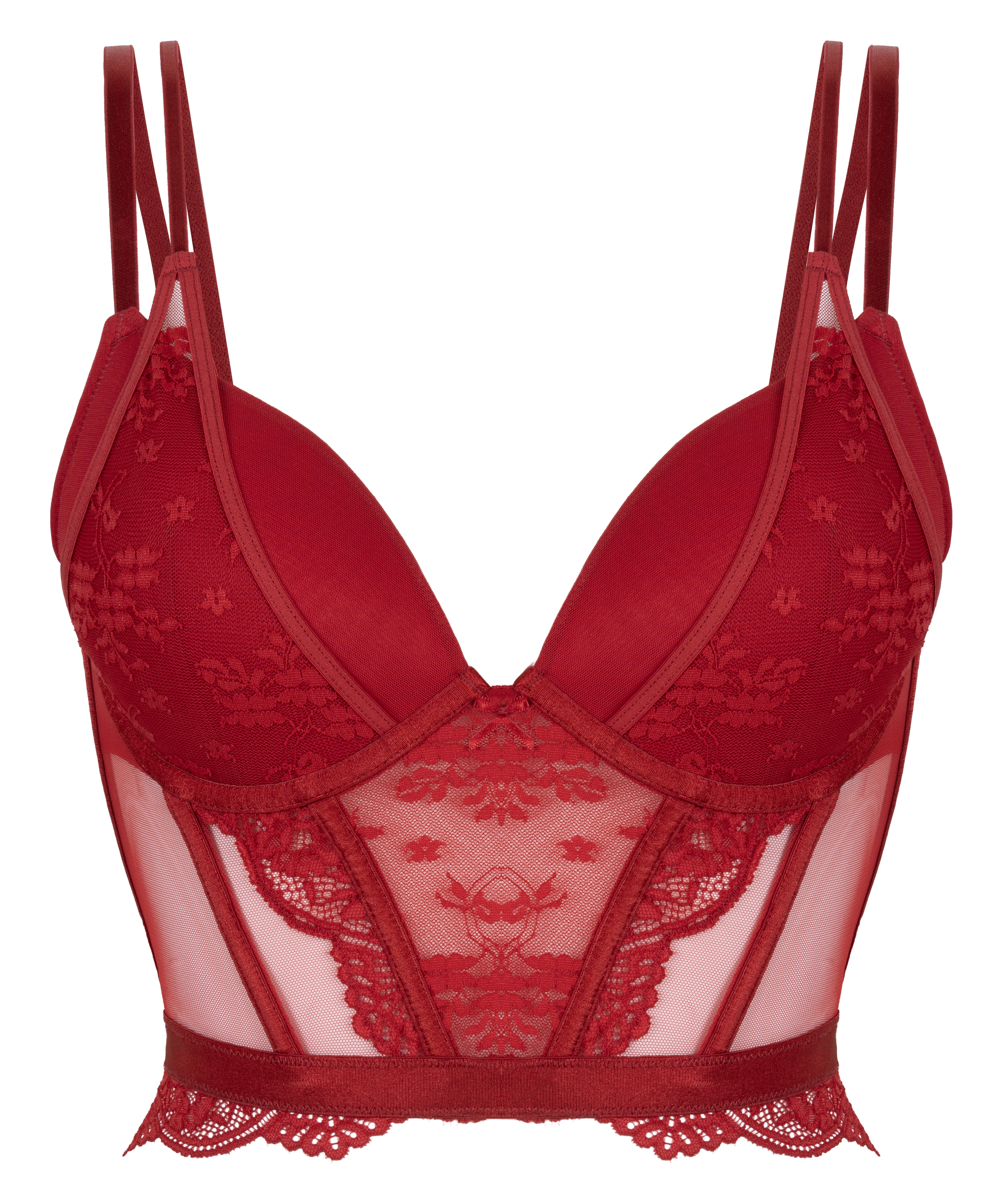 Coco Padded Underwired Longline Push-Up Bra - Red