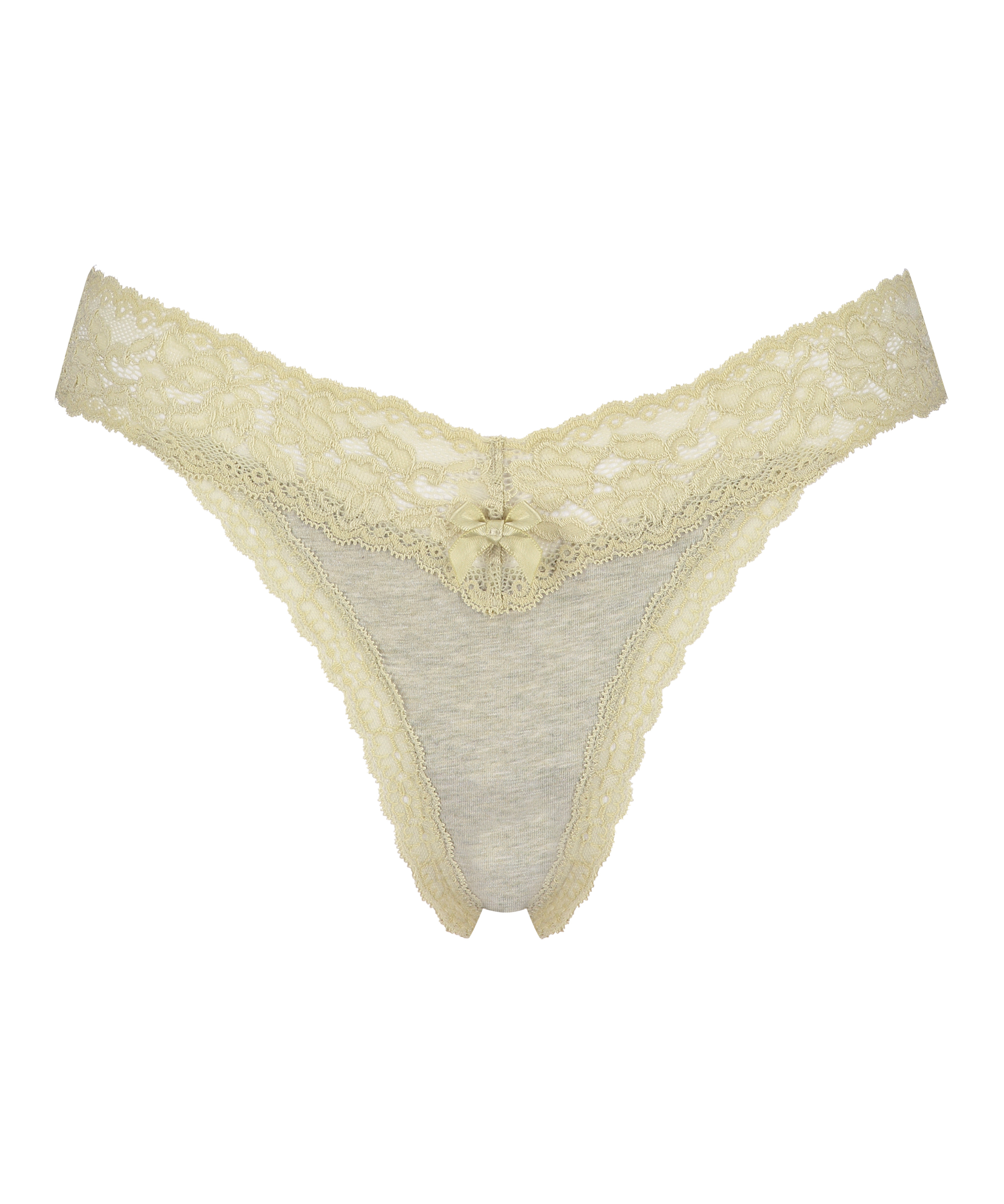 Mix and match with this lovely extra low V-shaped thong. The thong has a lace edge for an elegant touch. Combine with a matching bra or bralette.