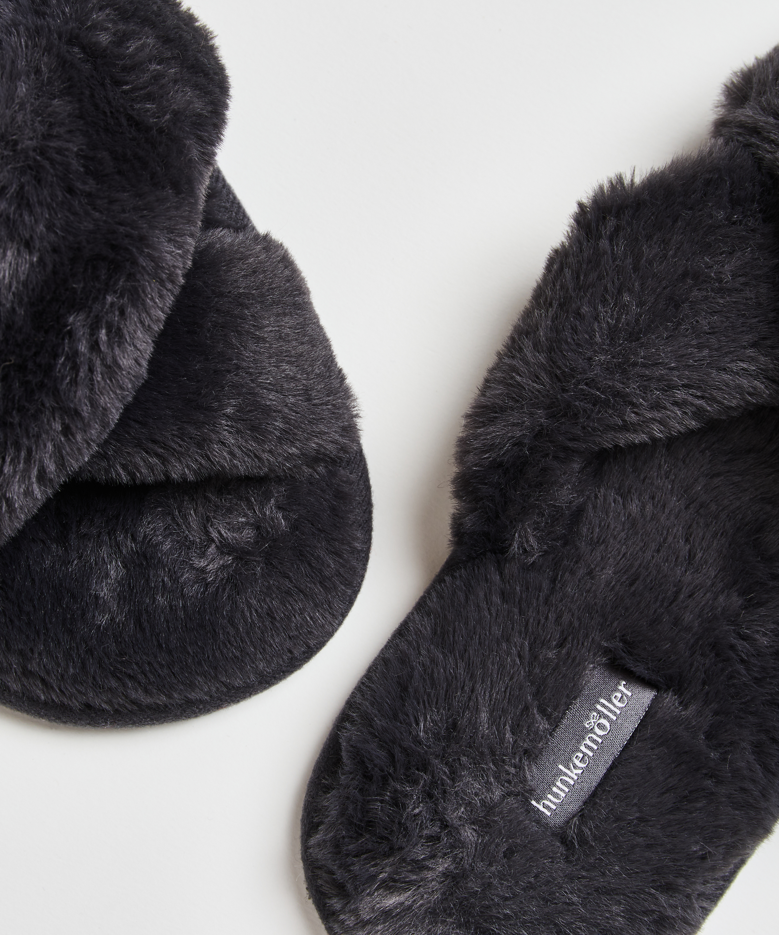 These sandals feature sturdy soles to provide good support for your feet. They are finished with crossed fake fur straps.