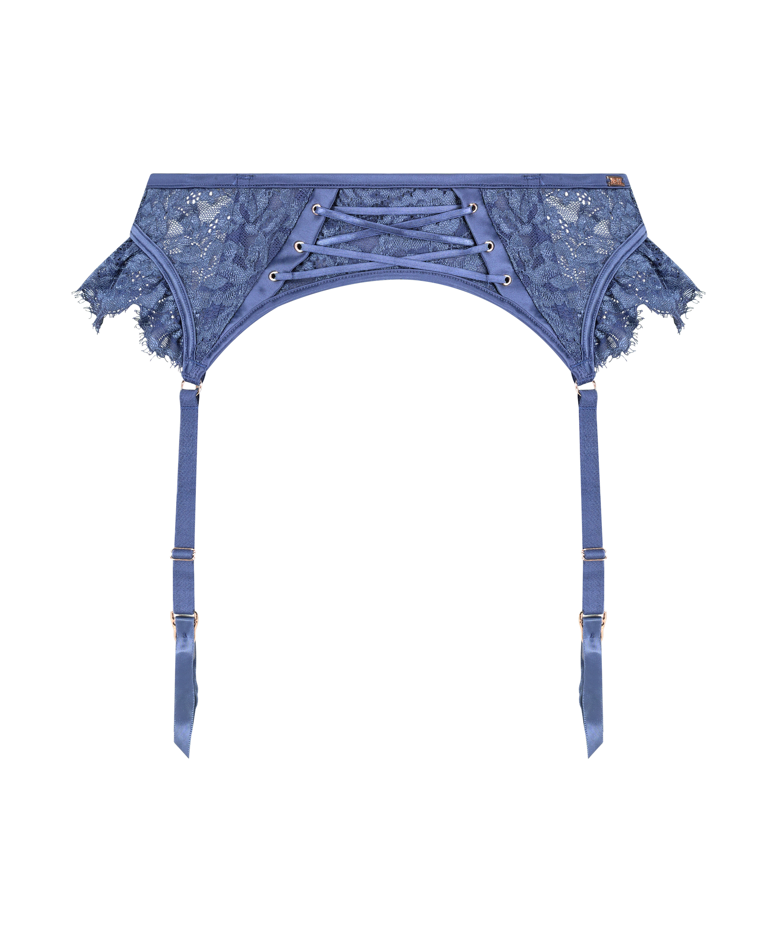 Add an extra layer to your lingerie set with this suspender belt! With an all over lace look, paired with lots of cute strappy details on the band. There are hosiery clips completed with cute ribbons. Find the rest of the set! Part of the Noir Collection.