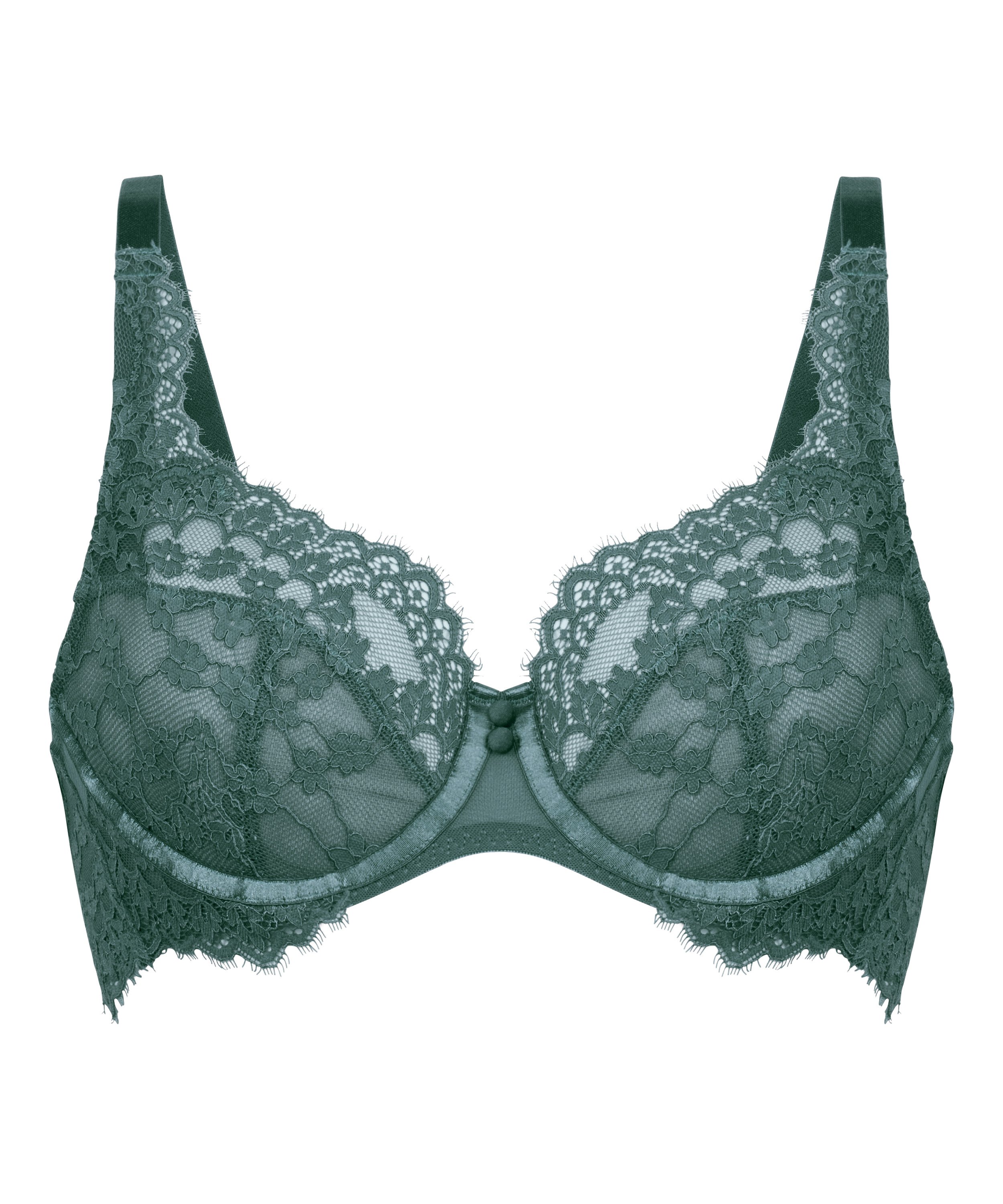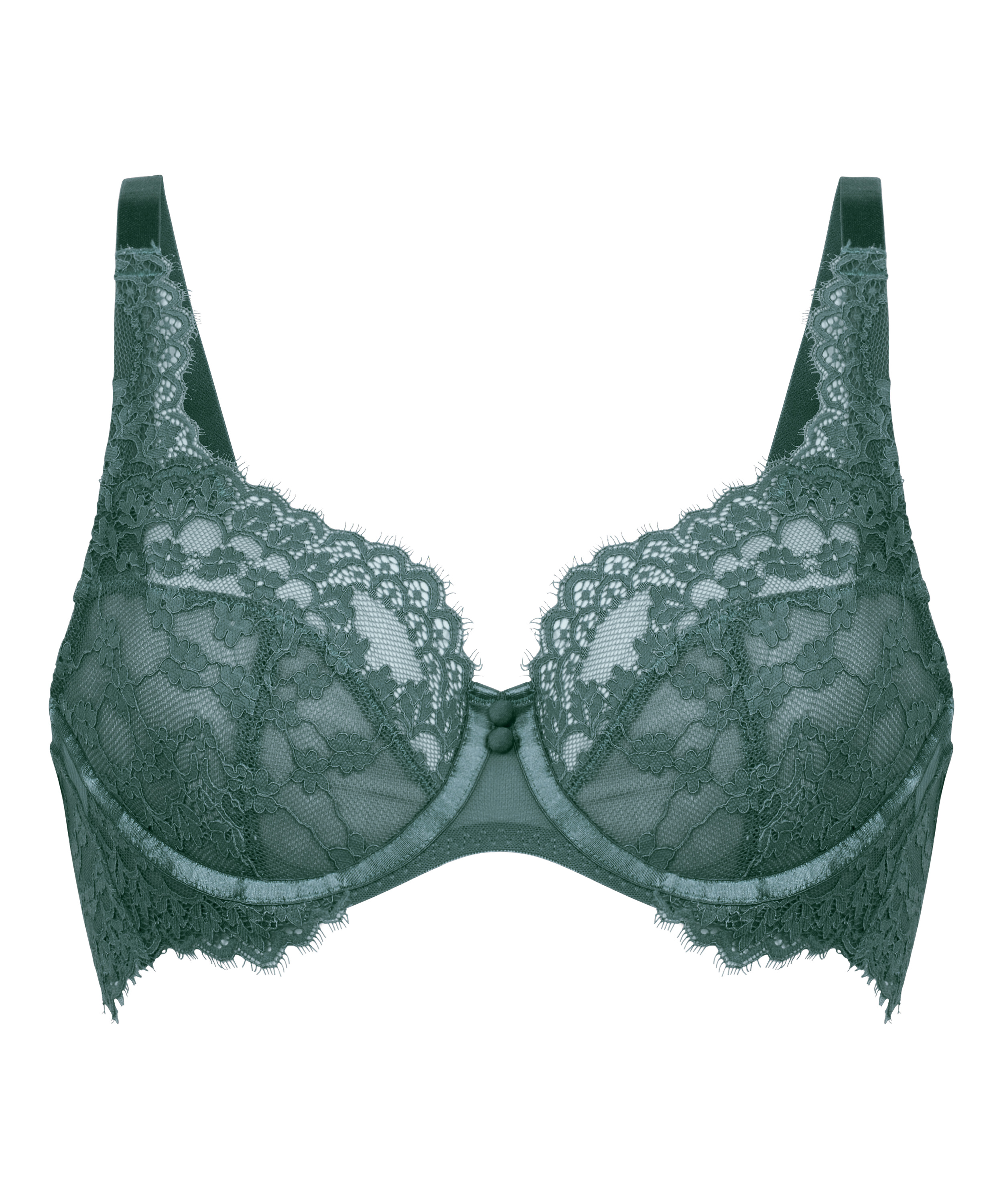 Feel fabulous in this bra! This non-padded underwired bra is semi-sheer with a lot of lace. Combine with matching items for a complete set!