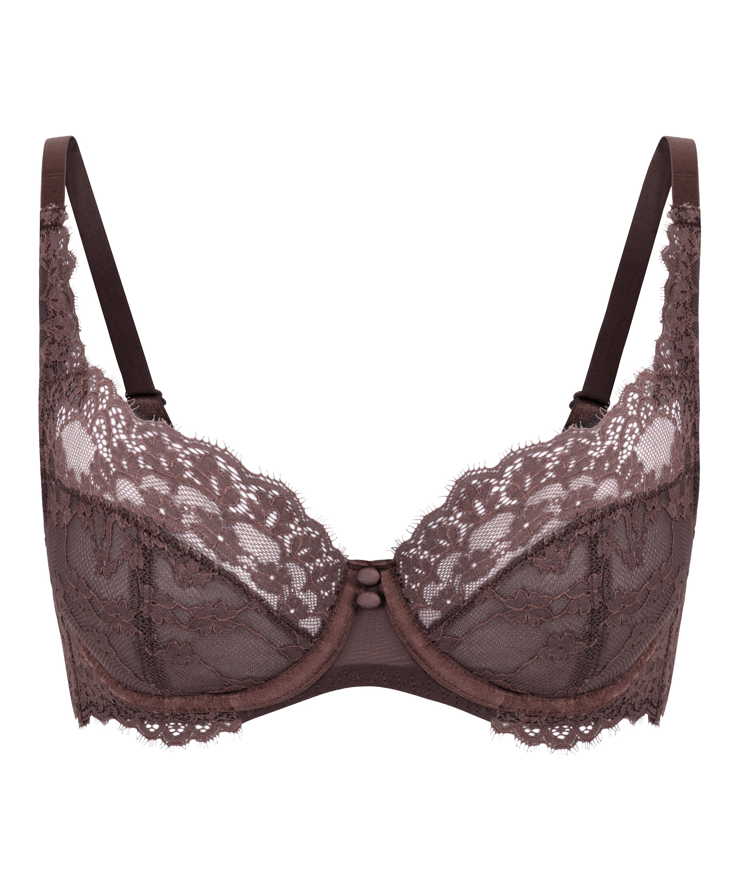 Feel fabulous in this bra! This non-padded underwired bra is semi-sheer with a lot of lace. Combine with matching items for a complete set!