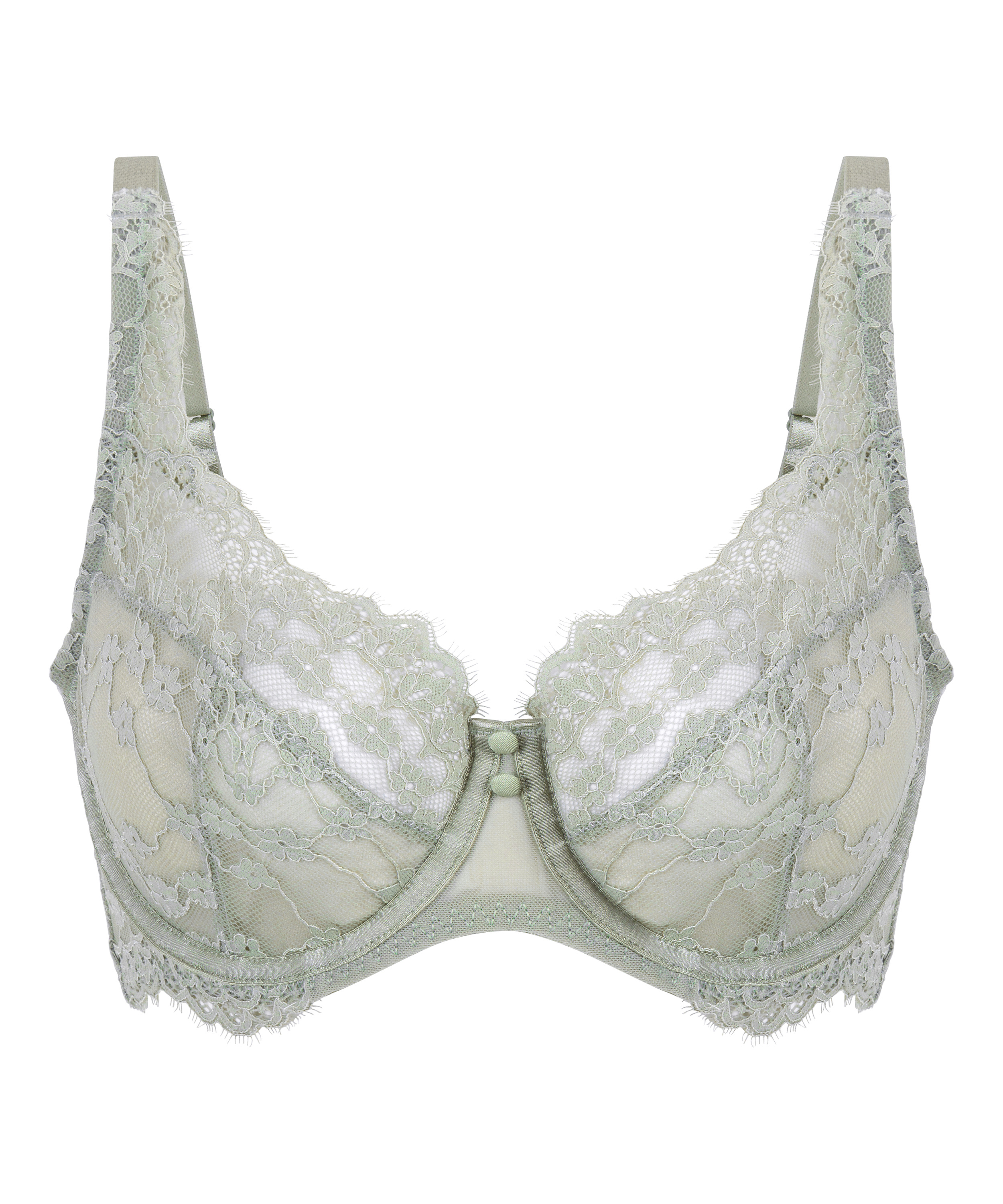 Feel fabulous in this bra! This non-padded underwired bra is semi-sheer with a lot of lace. Combine with matching items for a complete set!