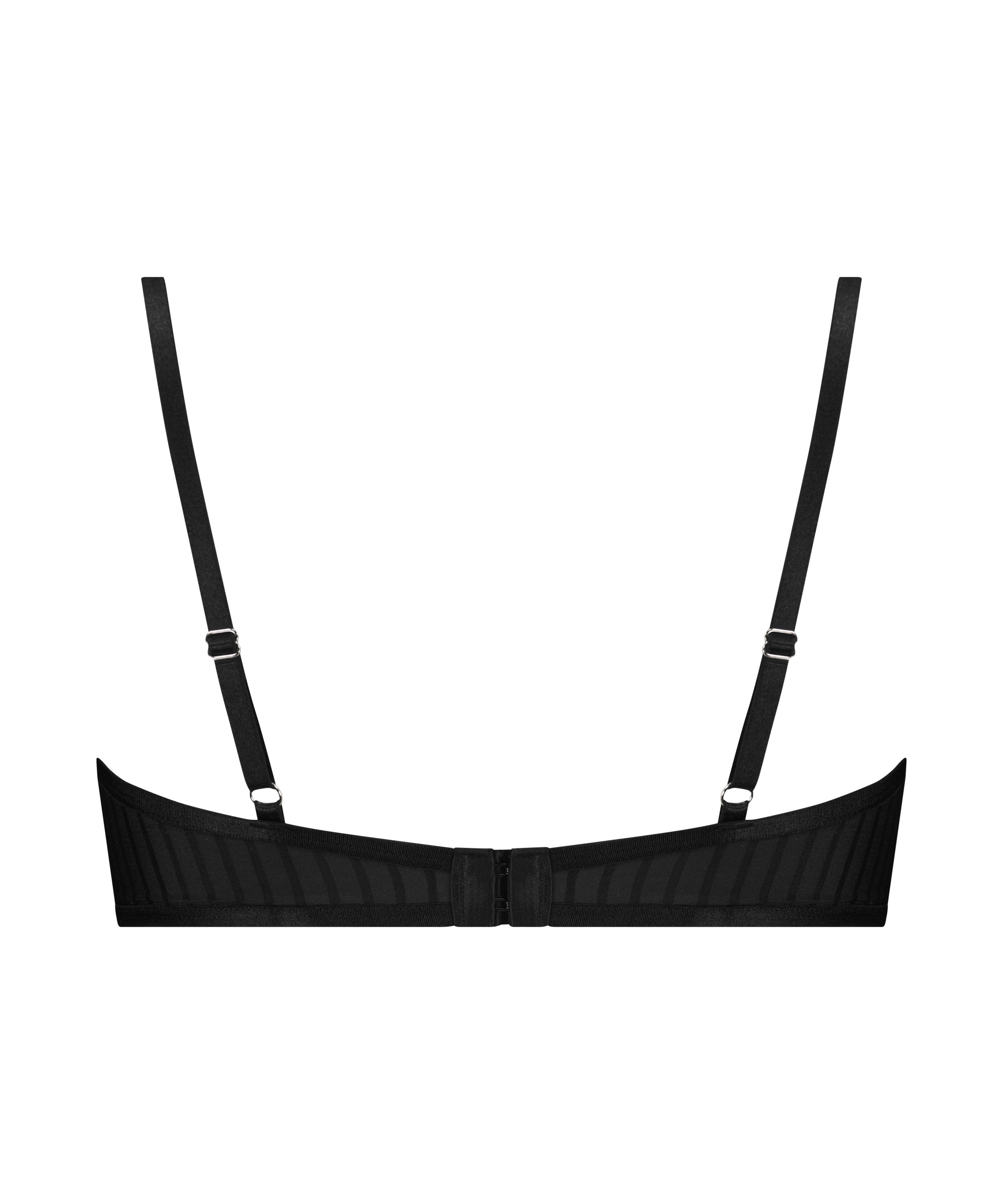 Look marvelous with this sexy bra! It is made of a soft sheer and mesh fabric. The cups are half padded for a little extra support. With the removable straps between the cups you can add some extra spice to your lingerie. Combine with the matching set items for a complete look.