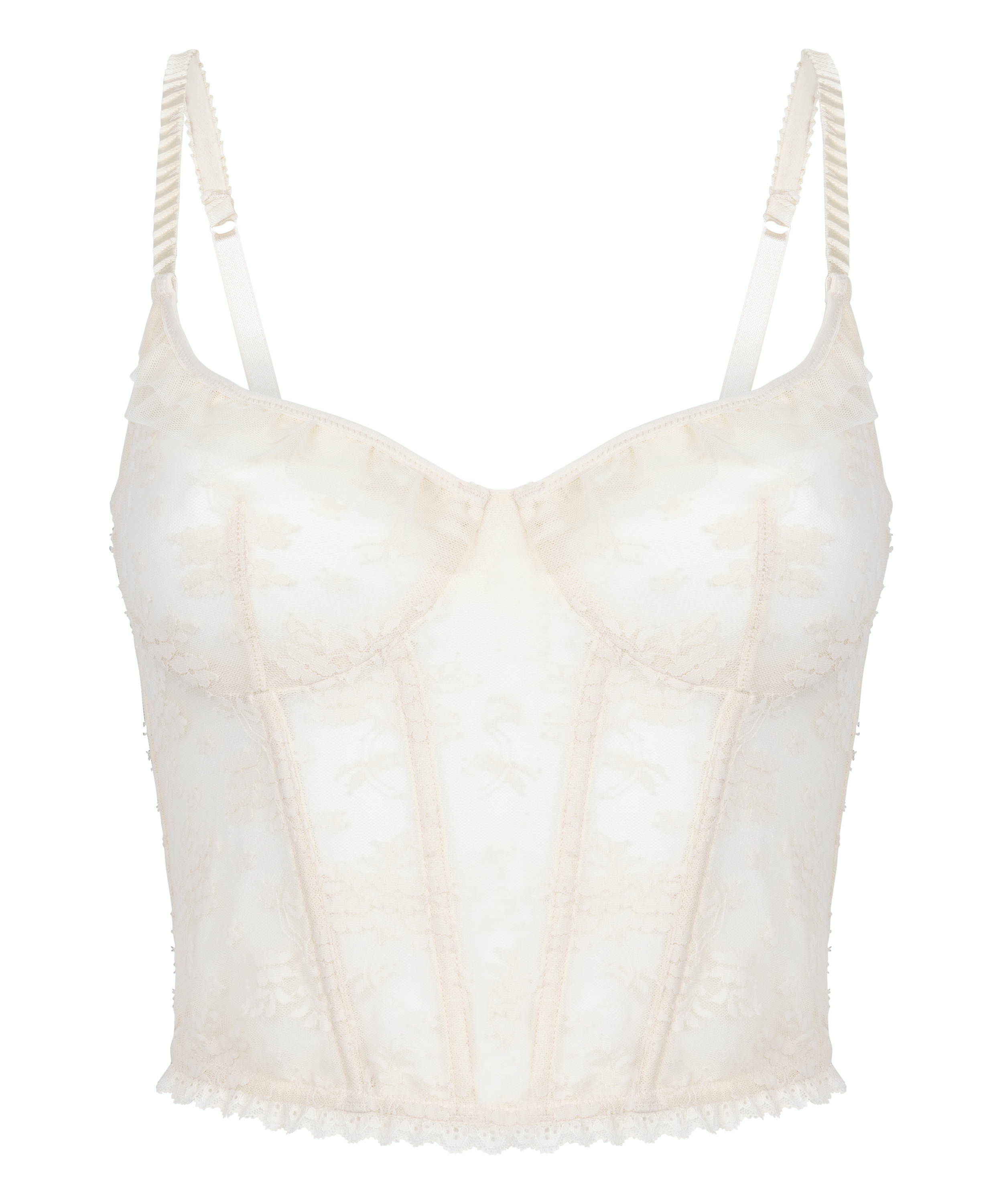 Romatic with a touch of feminine, that is our Darcy bra. Featuring non-padded cups with supportive underwire, it offers natural shape and lift with a leightweight feel. The allover lace adds texture, wile the ruffles along the cups bring a playful finish. With the longline silhouette, this bra is flattering and beautiful. Combine with the matching bottom for a compete look.