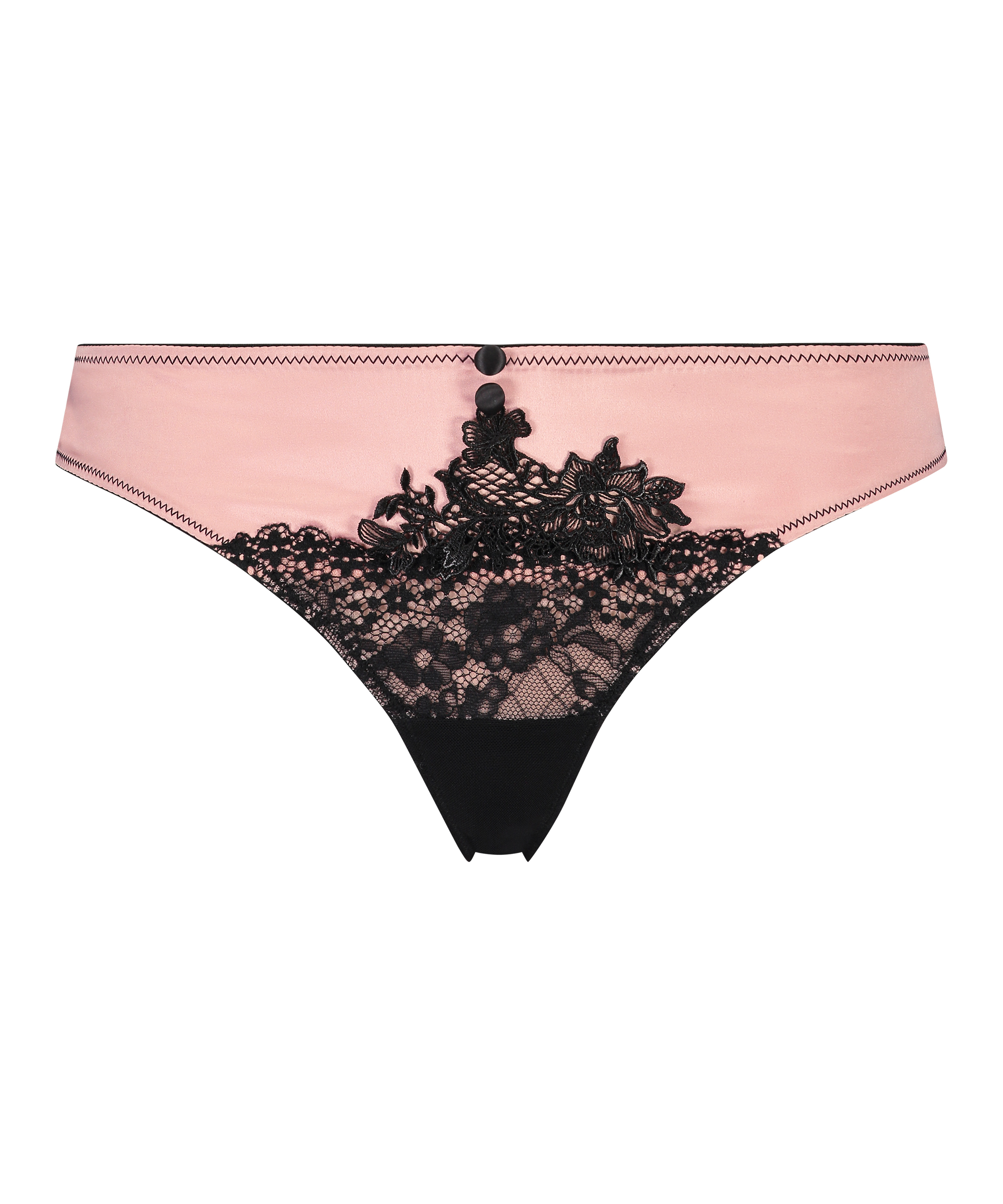 This thong is beautifully elegant, finished with lace and embroidery! The thong is made of a beautiful satin-effect fabric, for an extra feminine touch. Combine with one of the matching items. Part of the Rebecca Mir Collection.