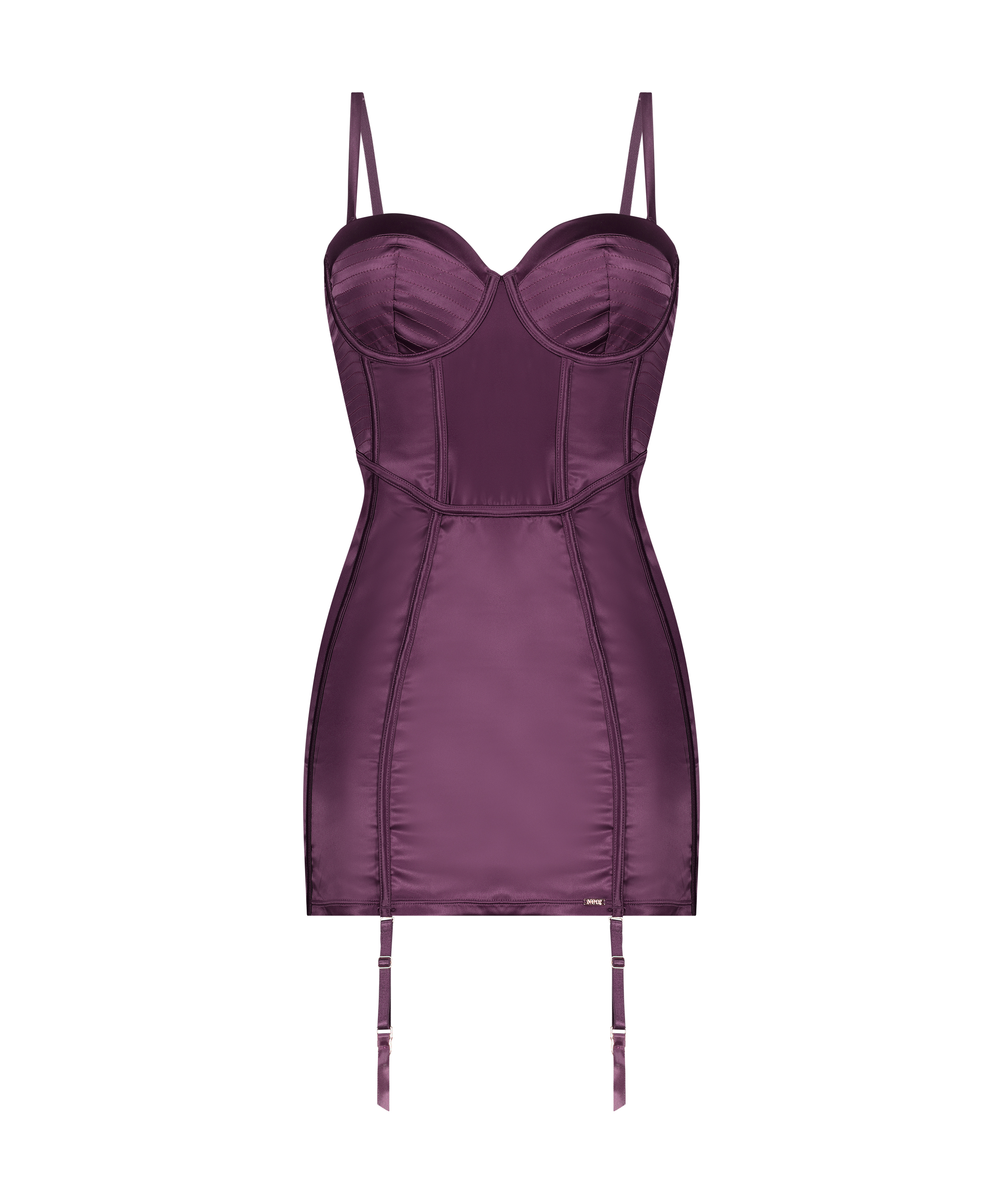 Playing the line between a dress and a bustier, the stunning Demi Slip dress is a decadent piece that’s guaranteed to elevate your seductive pursuits. This longline design features wiring that helps create a flattering silhouette, a beautiful satin look and feel and a touch of femininity. With detachable shoulder straps and hosiery loops to style this dress as you please. Combine with the matching brief and a pair of stockings for a striking, complete look.