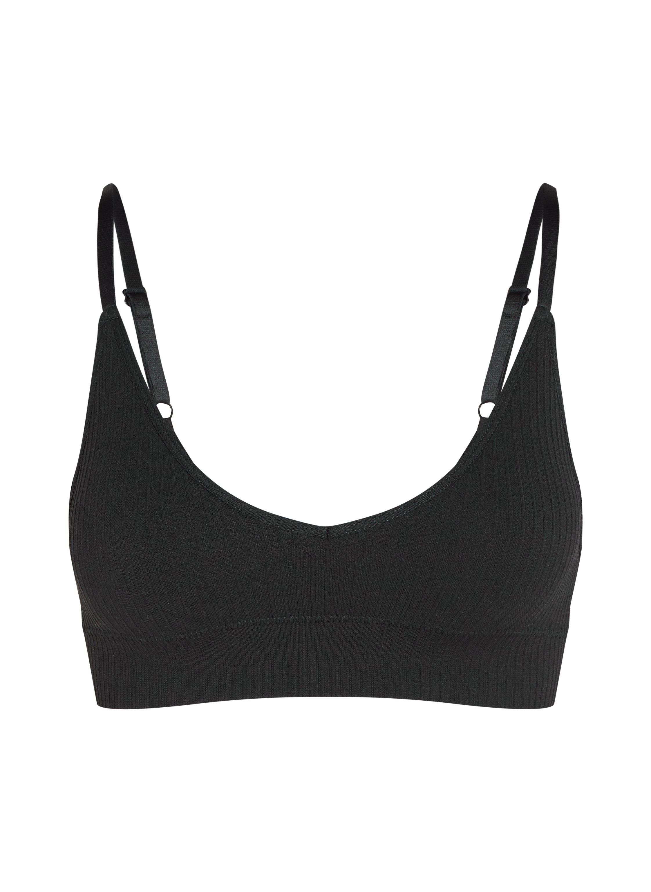 Go for comfort! This bralette supports you with a comfortable rib structure and a wide underband and is perfect to wear under tops. With removable lining. Complete your look by styling with matching high-waisted knickers or a thong.
