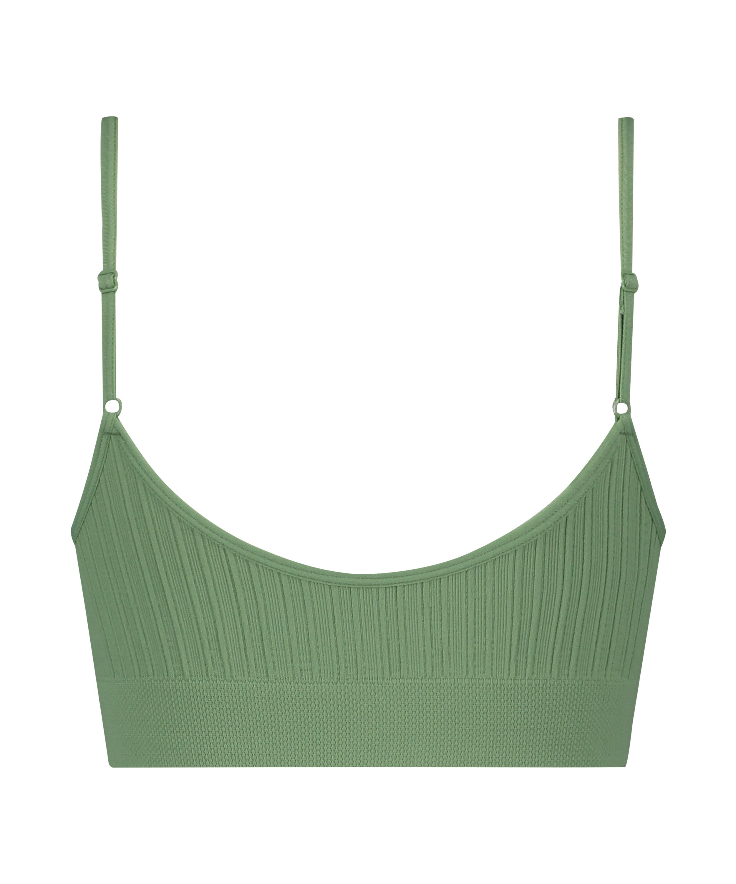 Go for comfort! This bralette supports you with a comfortable rib structure and a wide underband and is perfect to wear under tops. With removable lining. Complete your look by styling with matching high-waisted knickers or a thong.
