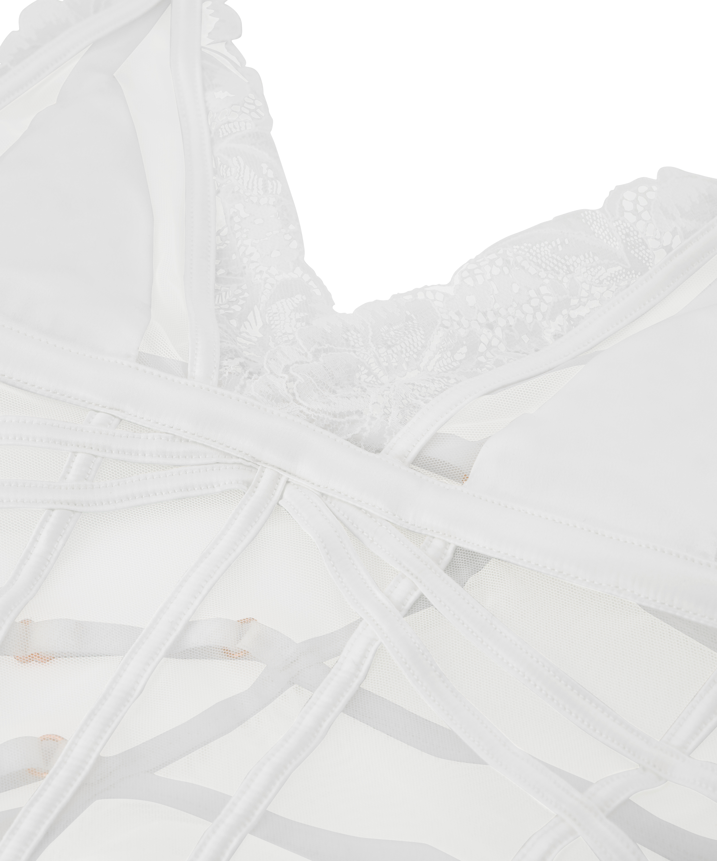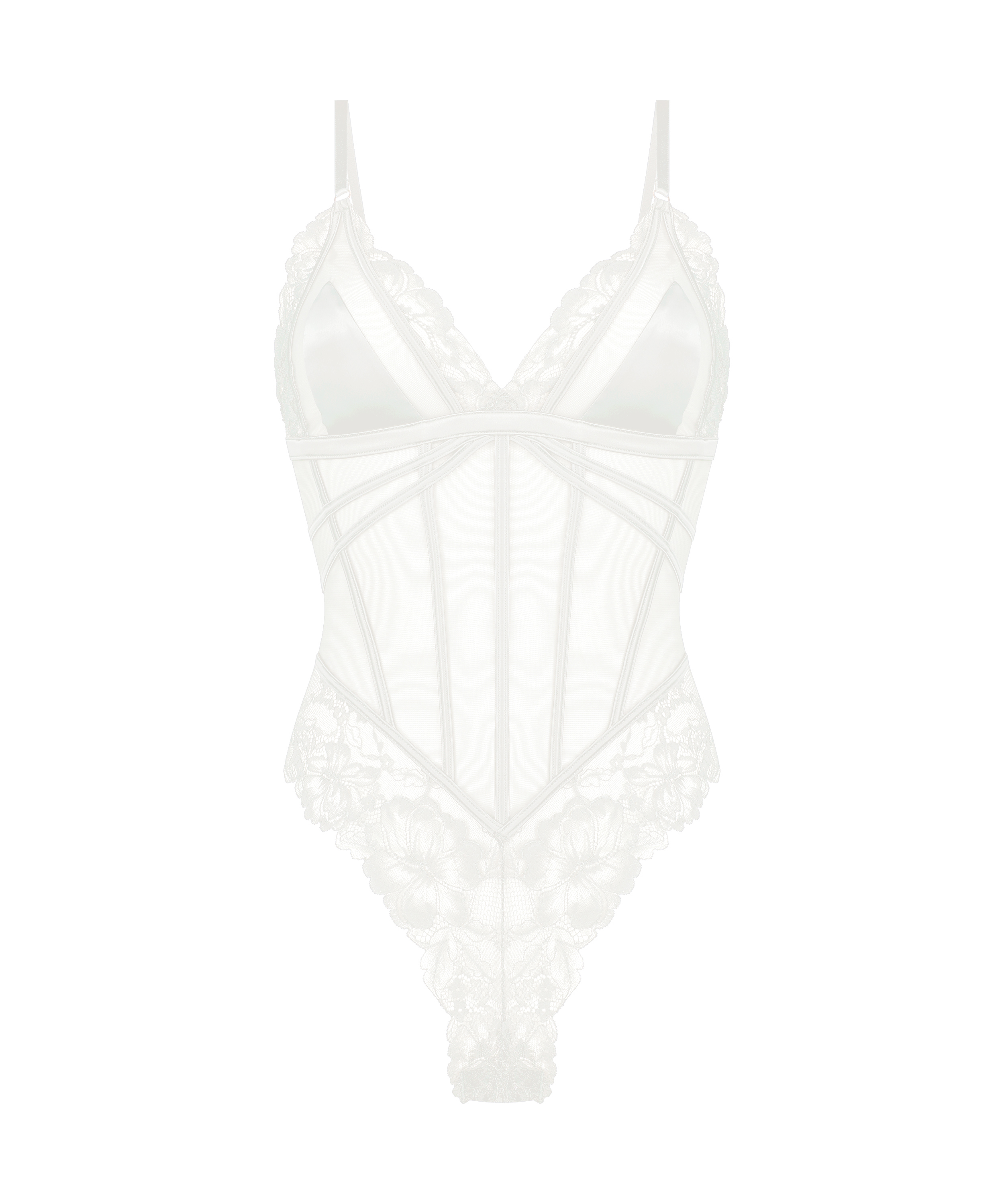 Feel comfortable in this body! The body is unpadded with a beautiful semi-open back. There are lots of lace details on the front and back, paired with frontal boning for a supportive fit. Combine this body with matching items from the Noir collection.
