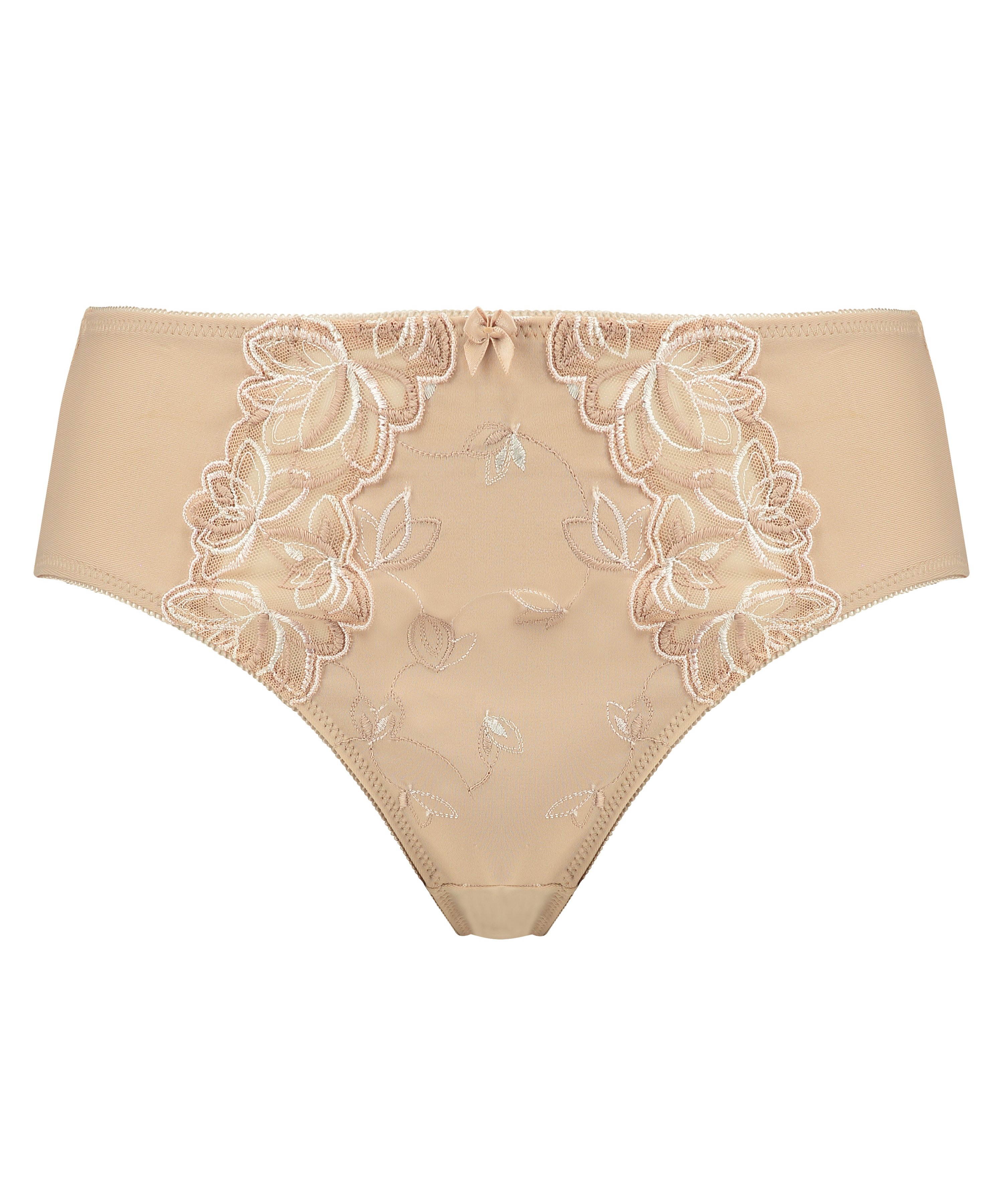 These high-knickers are made from supple flowing fabric for a lovely fit and are decorated with floral embroidery and a small bow on the front.