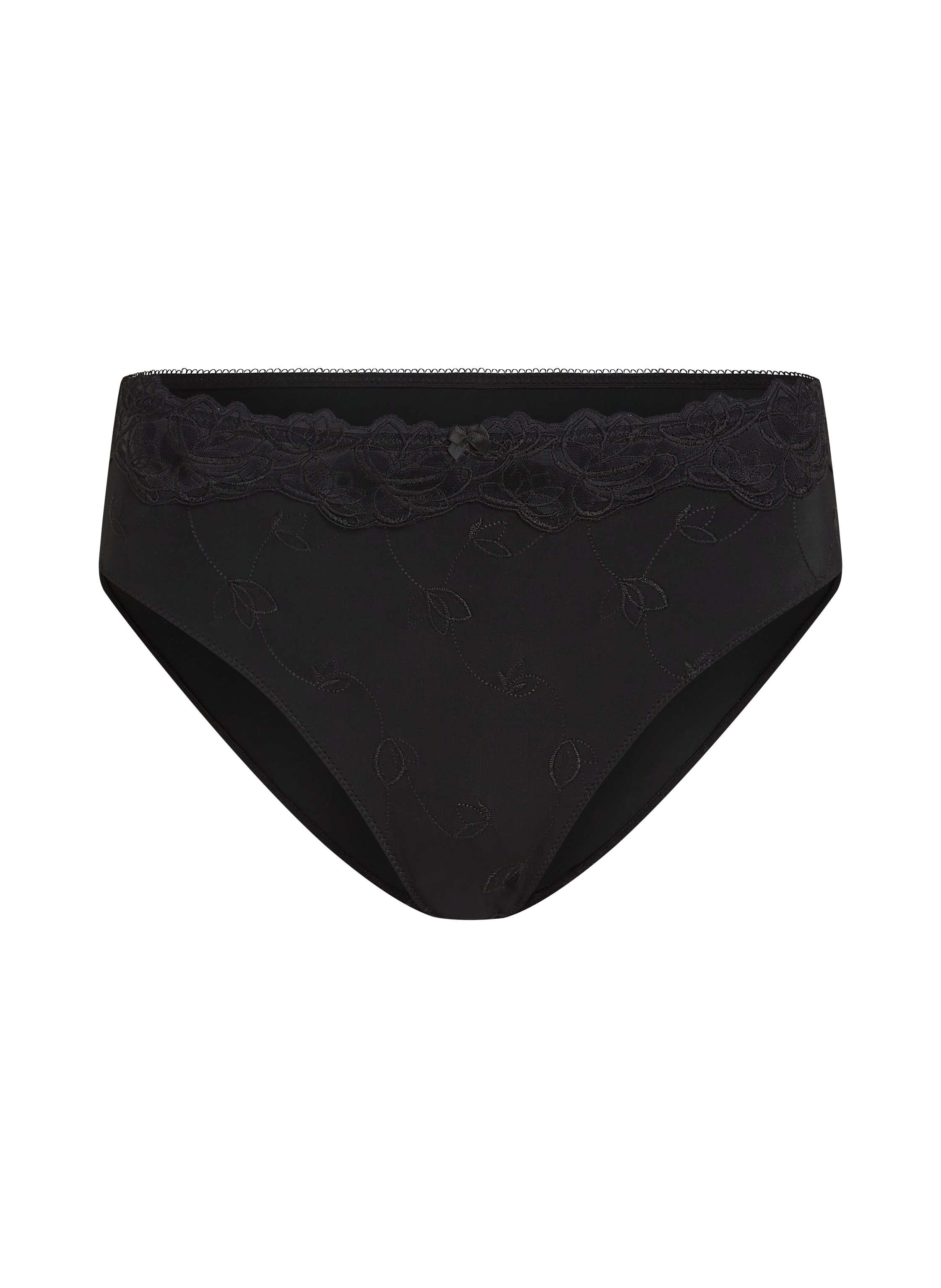 These high-knickers are made from supple flowing fabric for a lovely fit and are decorated with floral embroidery and a small bow on the front.