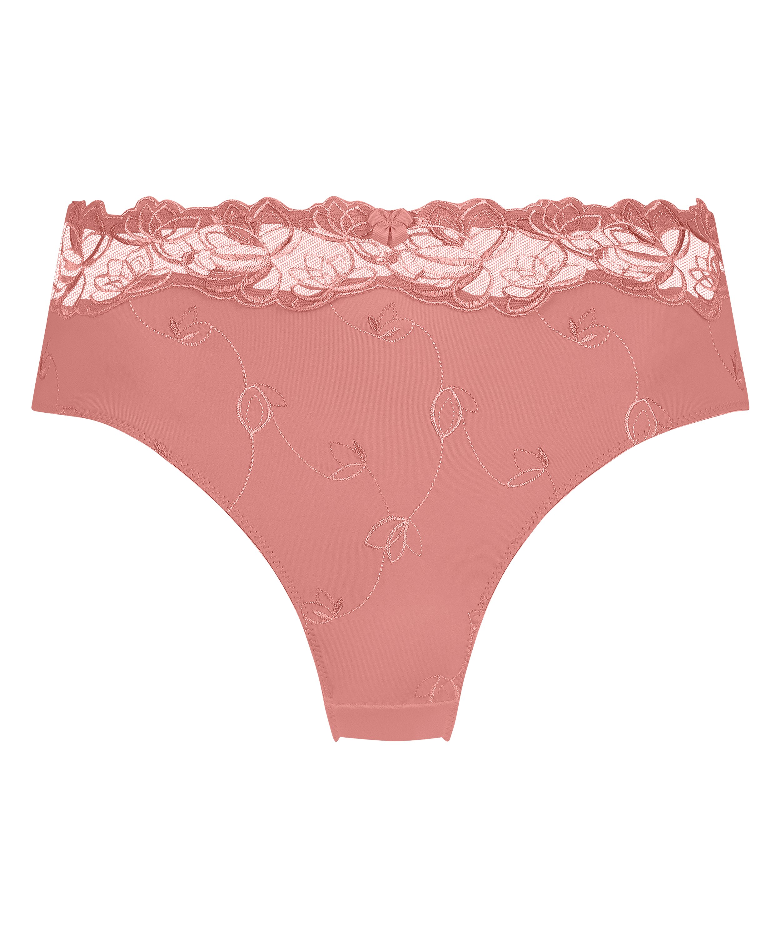These high-knickers are made from supple flowing fabric for a lovely fit and are decorated with floral embroidery and a small bow on the front.