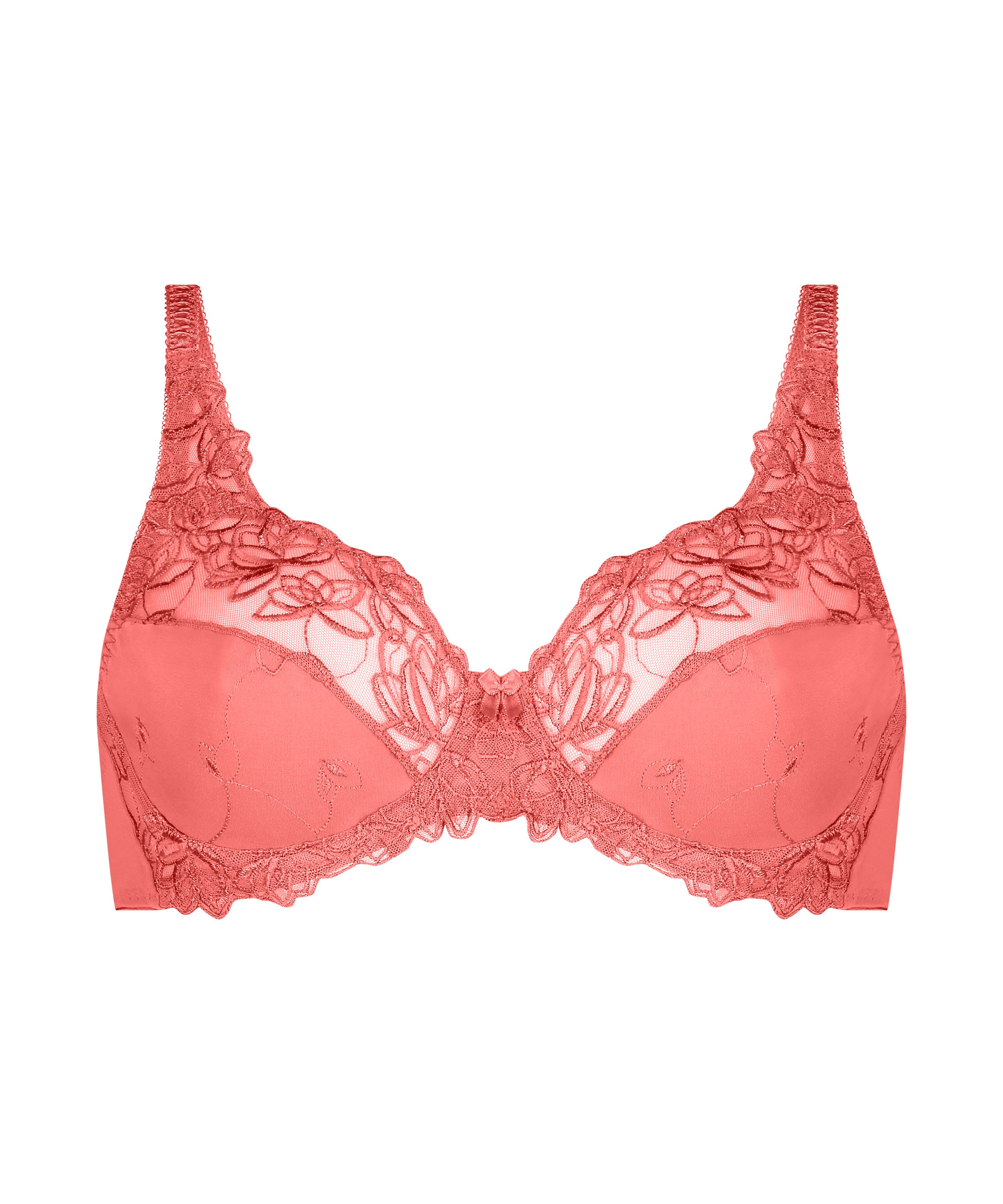 This non-padded underwired bra is made from non-see-through fabric with semi-transparent lace at the top. The cups are decorated with a floral pattern. Combine with the matching Diva knickers for a complete set.