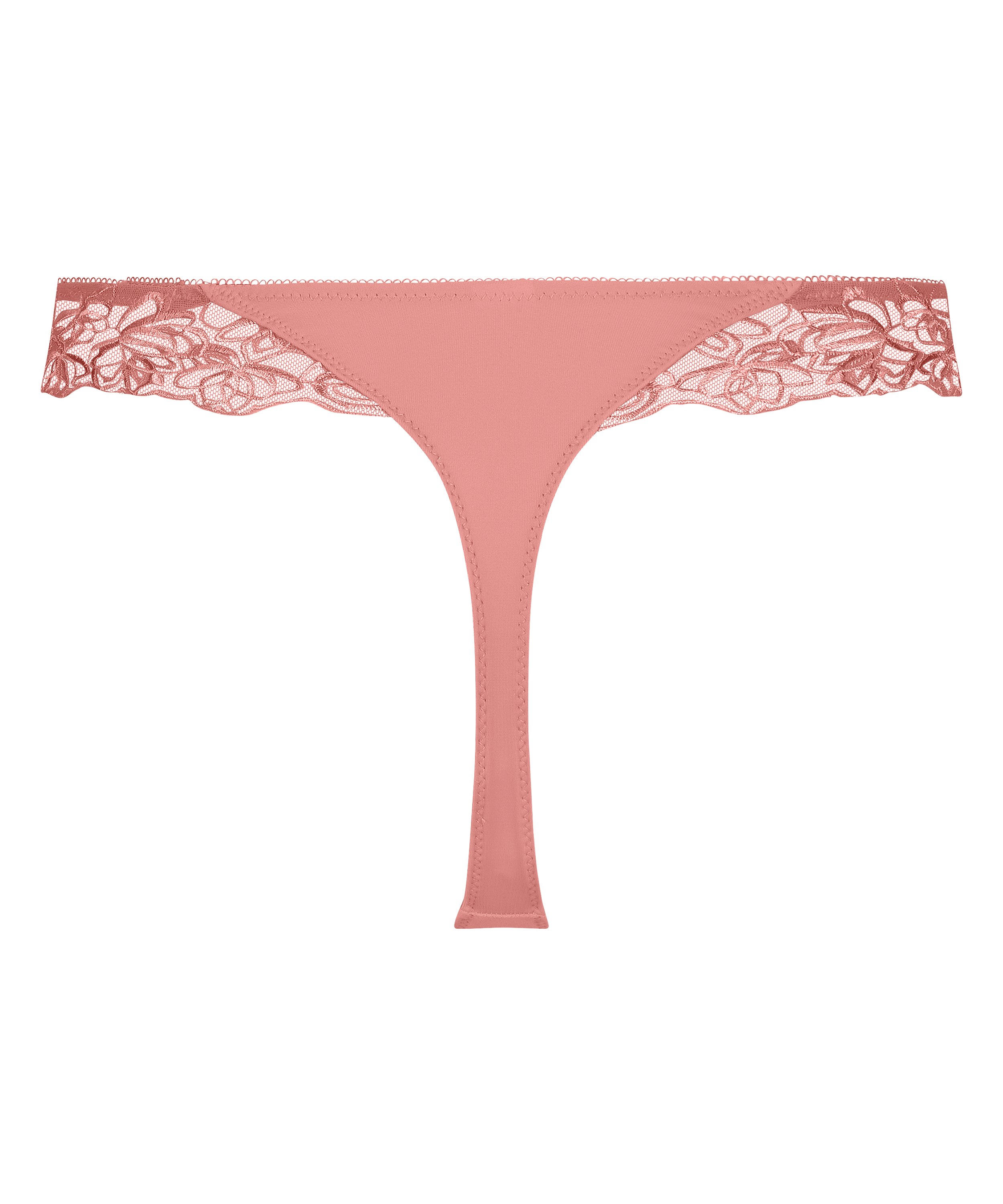 These thong shorts with floral embroidered lace are a positive way to start your day. The front is finished with semi-transparent fabric.