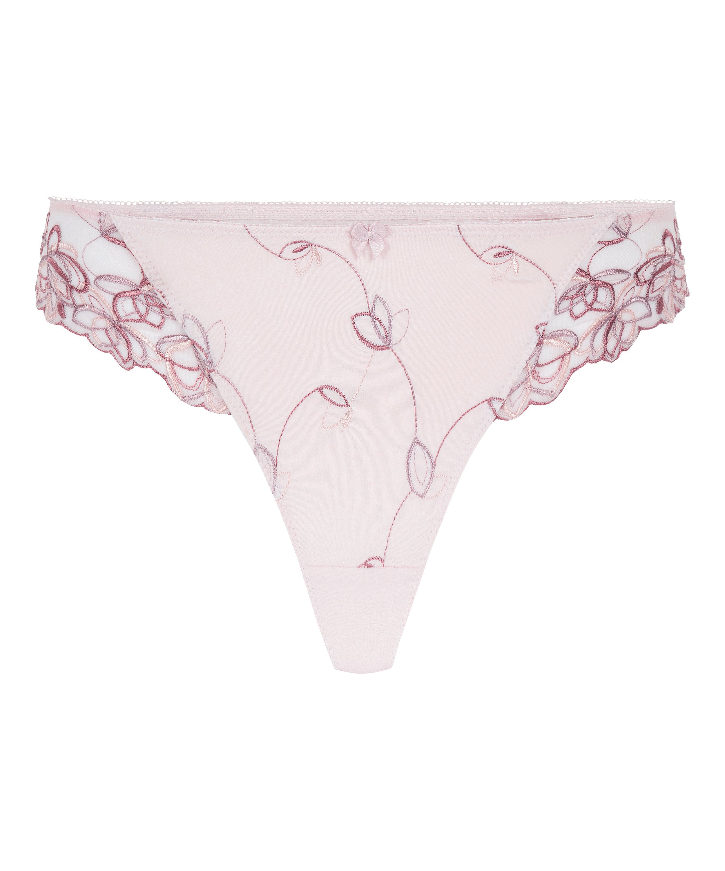 These thong shorts with floral embroidered lace are a positive way to start your day. The front is finished with semi-transparent fabric.