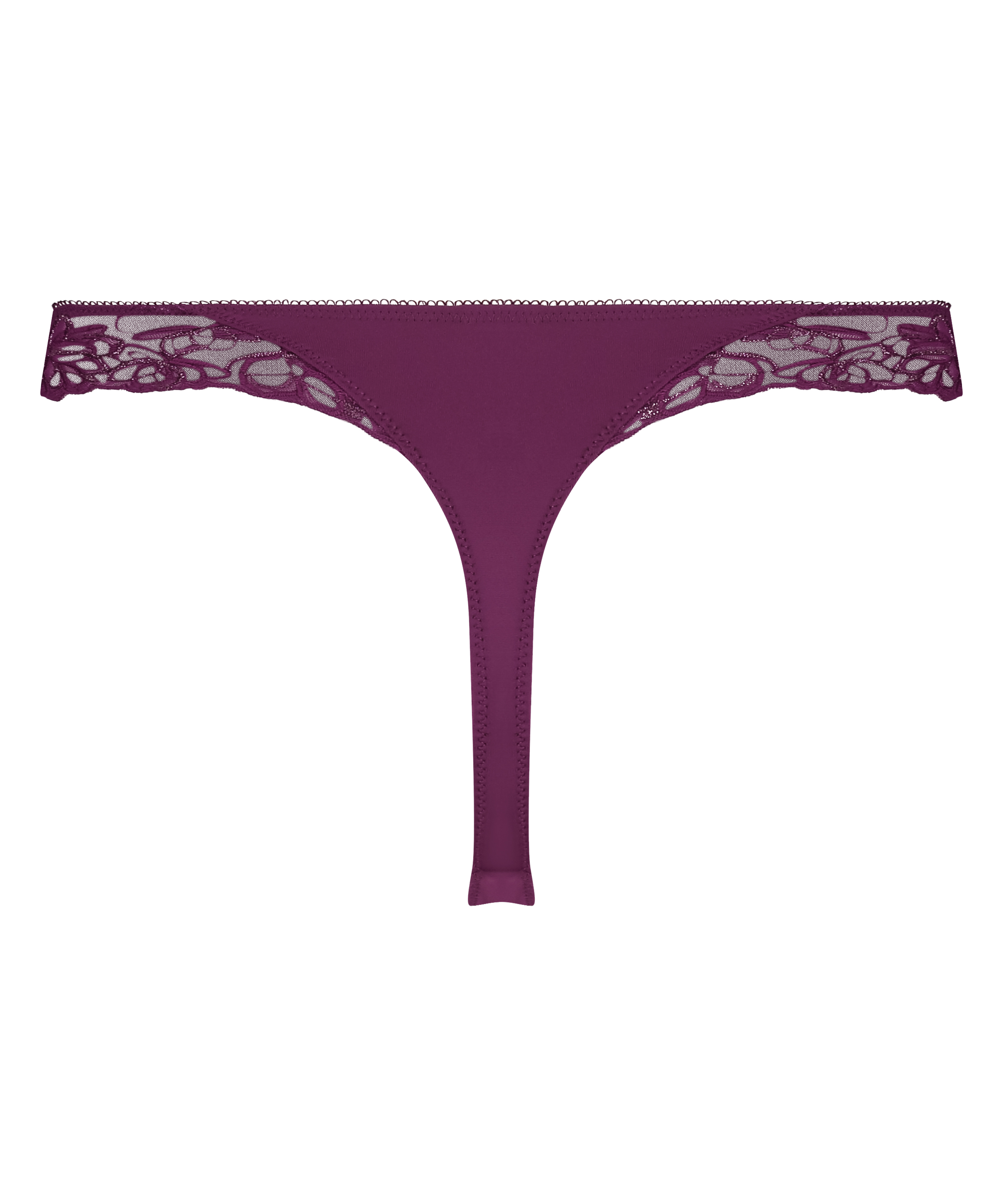 These thong shorts with floral embroidered lace are a positive way to start your day. The front is finished with semi-transparent fabric.
