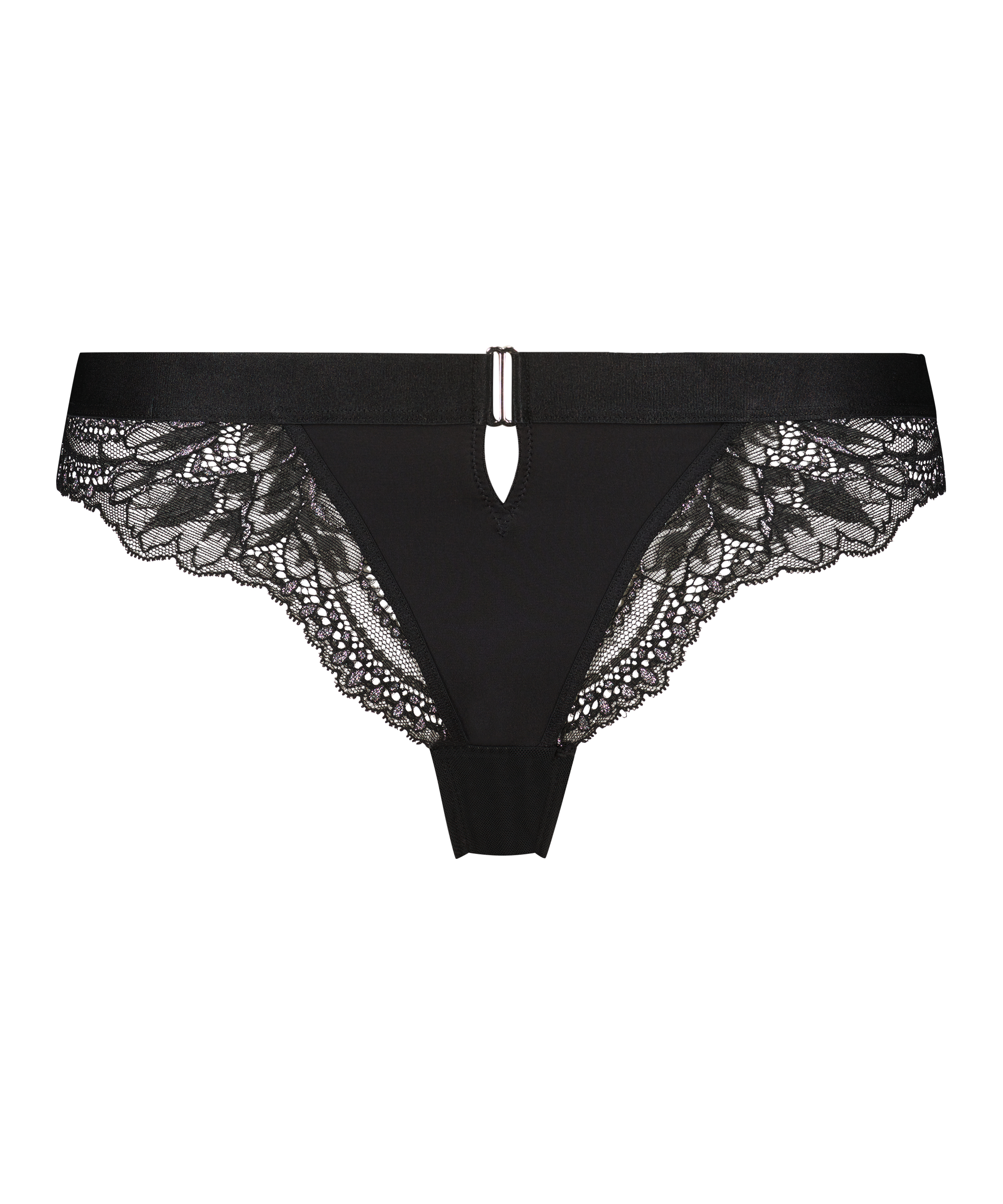 Feel confident and sexy in this thong with silver lurex and a cute cut-out detail. Add a touch of glamour and sophistication to your lingerie set. This thong is part of a lingerie set with many mix-and-matchable items to create a complete new look with every option.