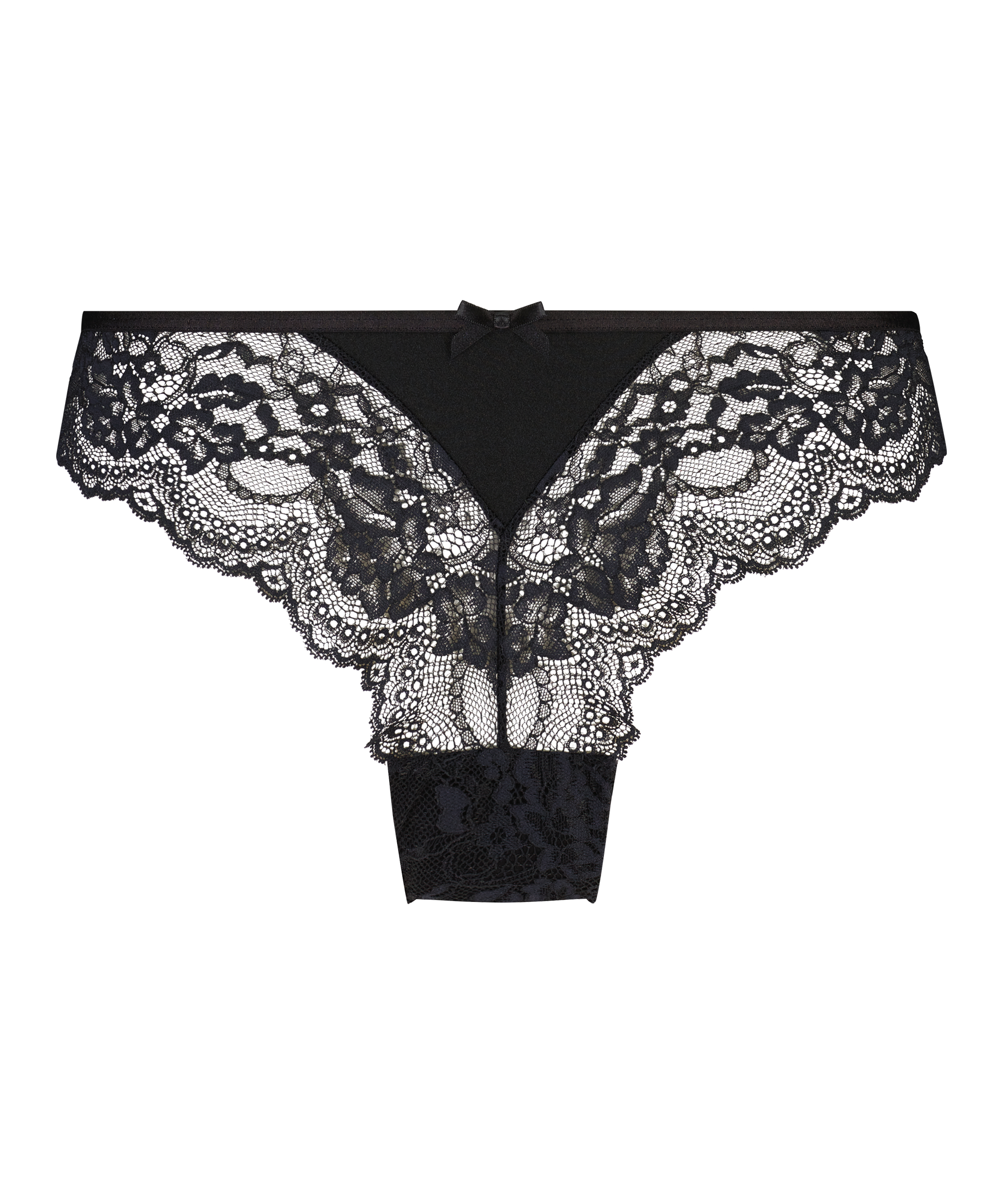 Don't miss out on this super comfortable brazilian! With an all-over lace look, along with microfiber details, and it is finished off with a cute bow. Pair with your favorite bra!