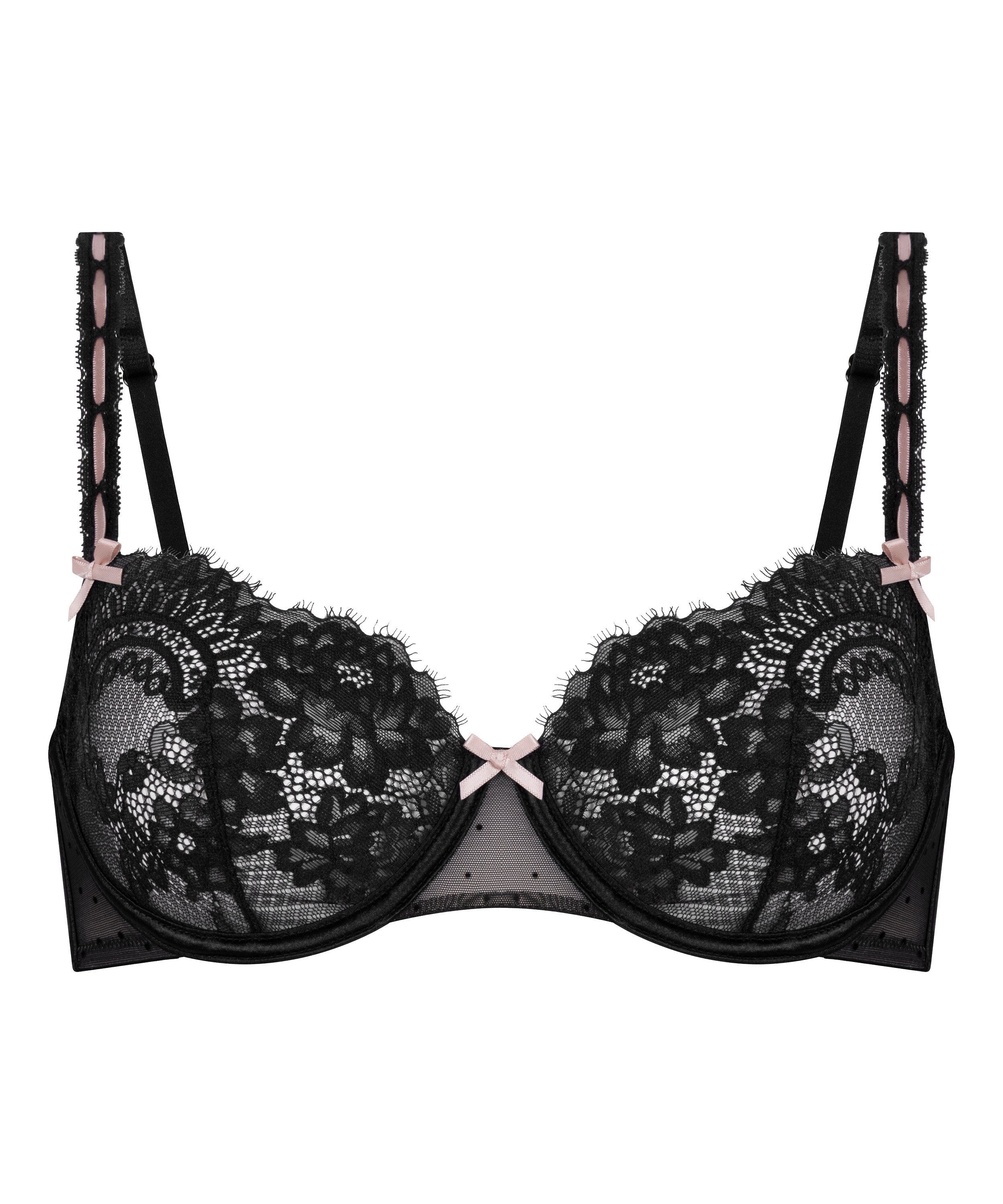 Delicate and detailed, our Dorothy bra offers light support. The cups feature lace, offering a soft feel. Underwire provides gentle lift and shap, while the bows at the straps and center front adds a final touch. Combine with the matching bottom for a complete look.