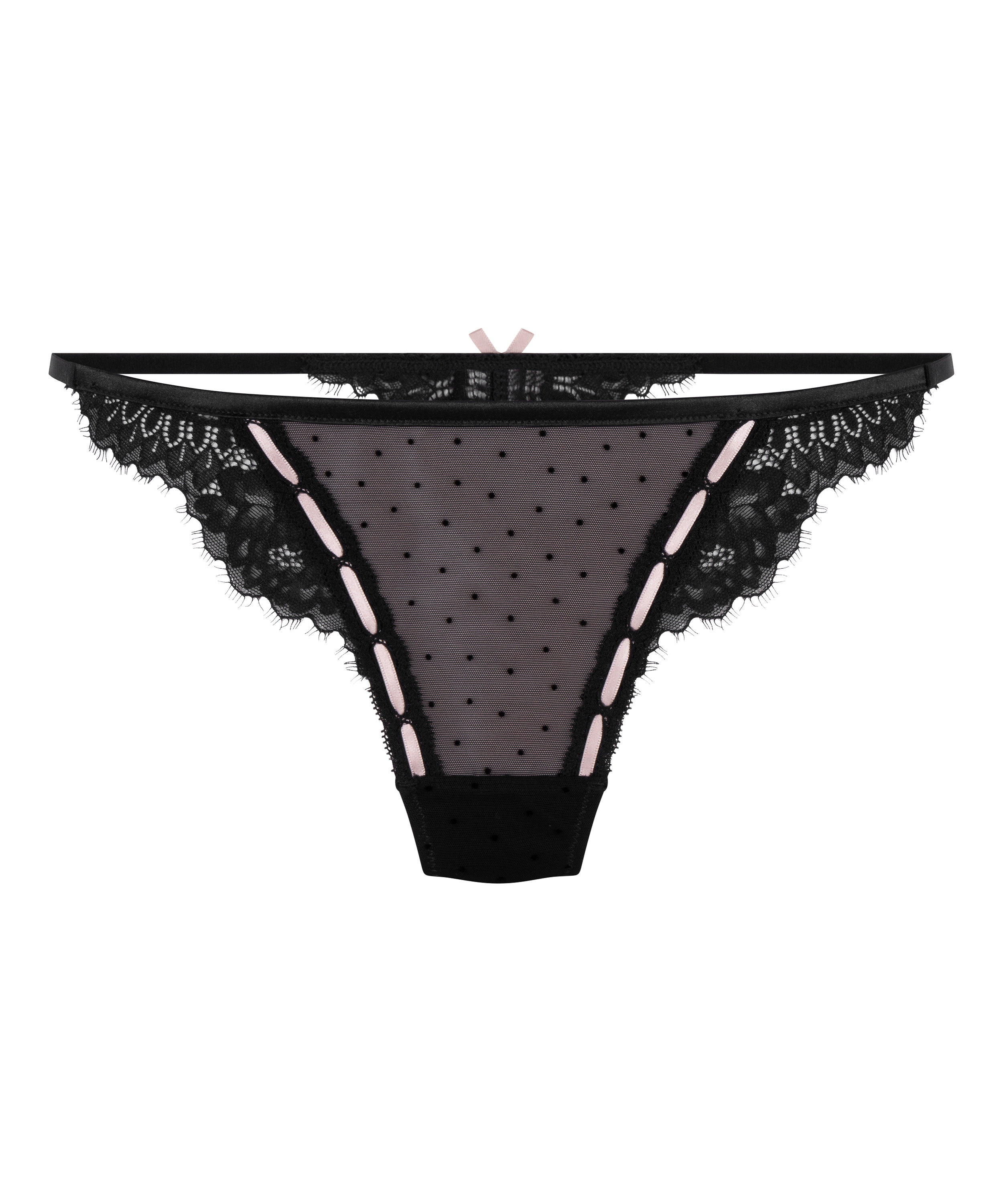 Light and feminine, our Dorothy thong is a perfect mix of pretty and practical. The front features dotted mesh, while the lace back adds a touch of elegance. Combine with a matching bra for a complete look.