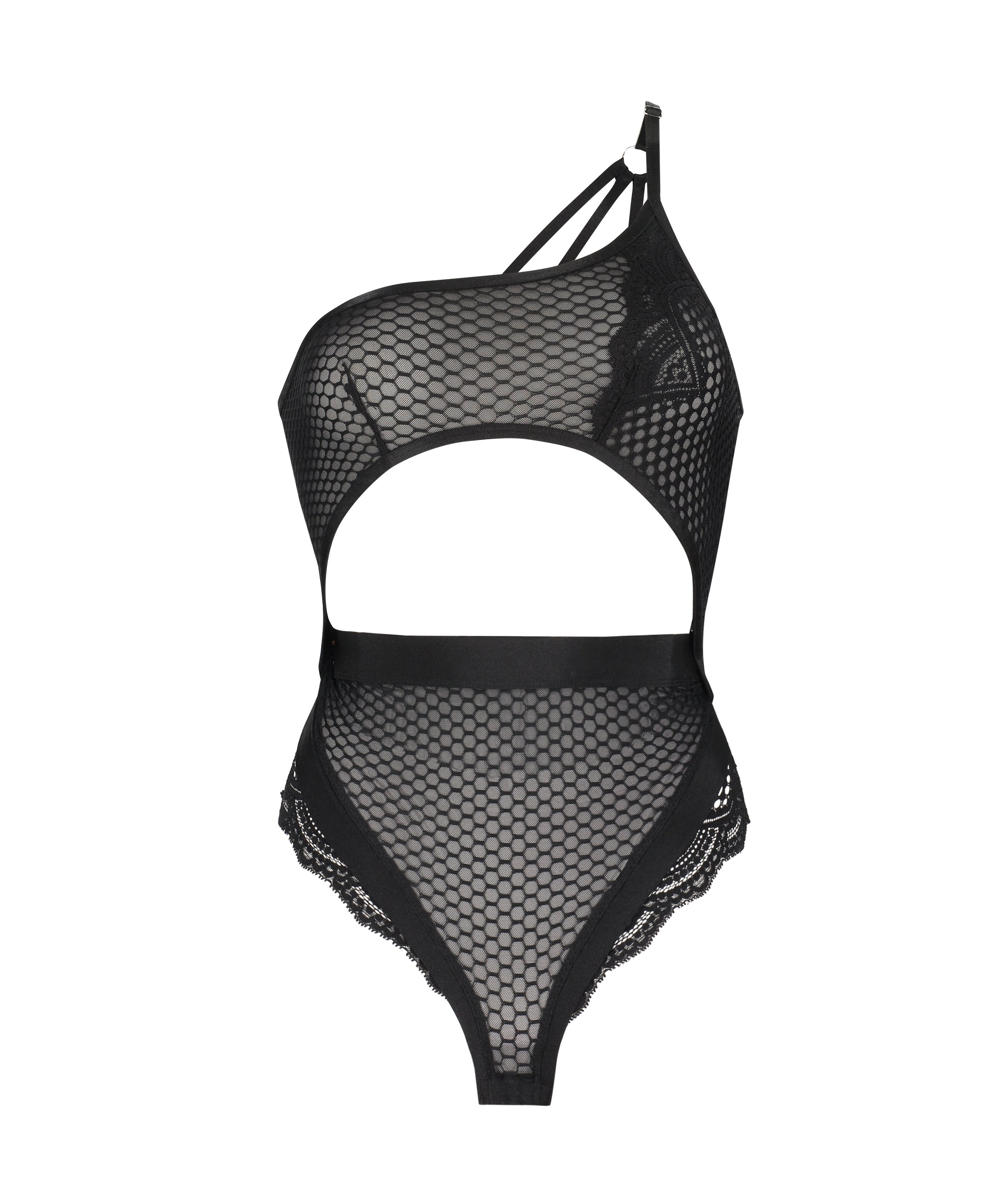 This body exudes femininity. It features a very sexy combination of mesh and lace. Combine with a pair of sexy stockings and matching knickers. Part of the Duckie Thot Collection.