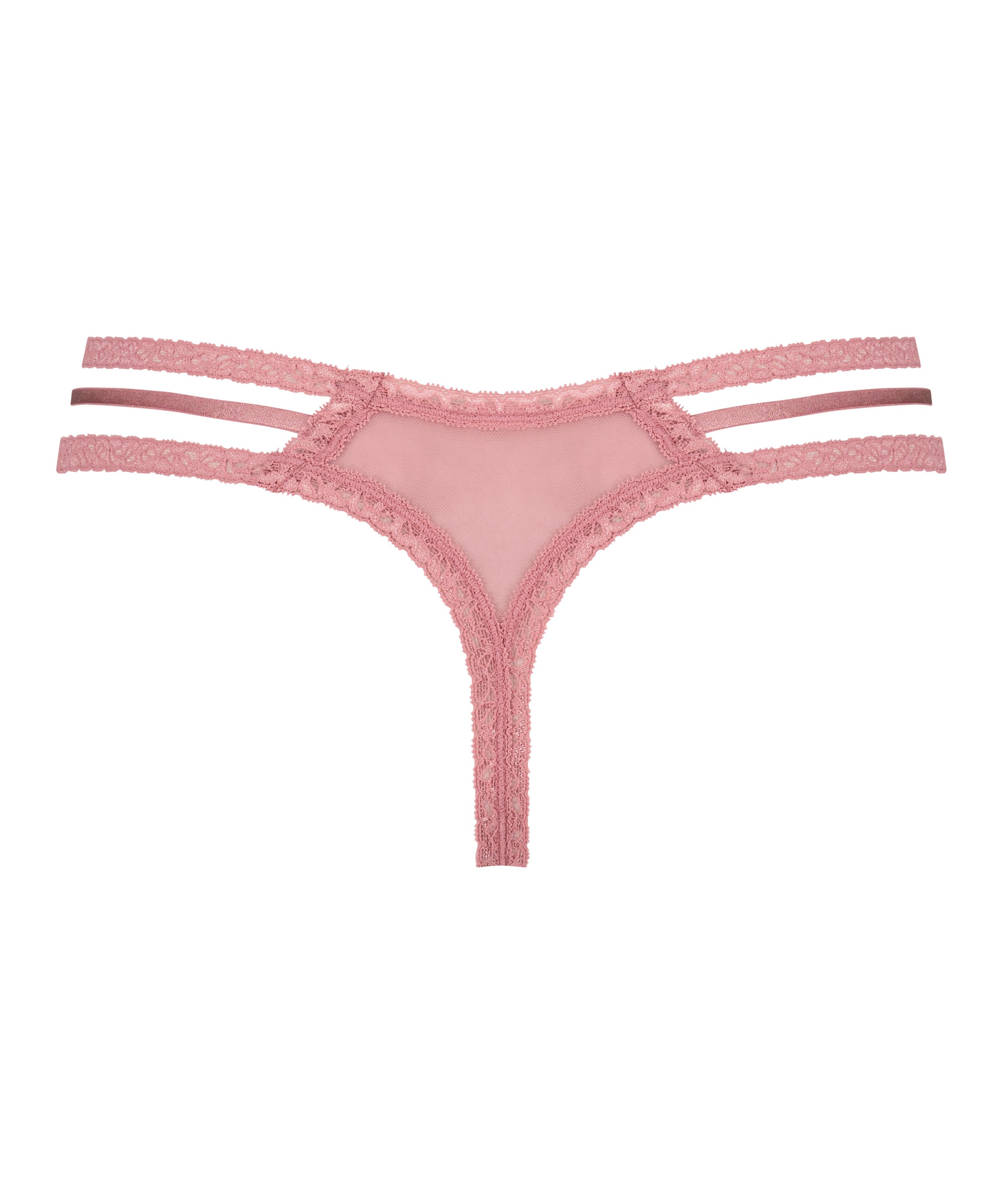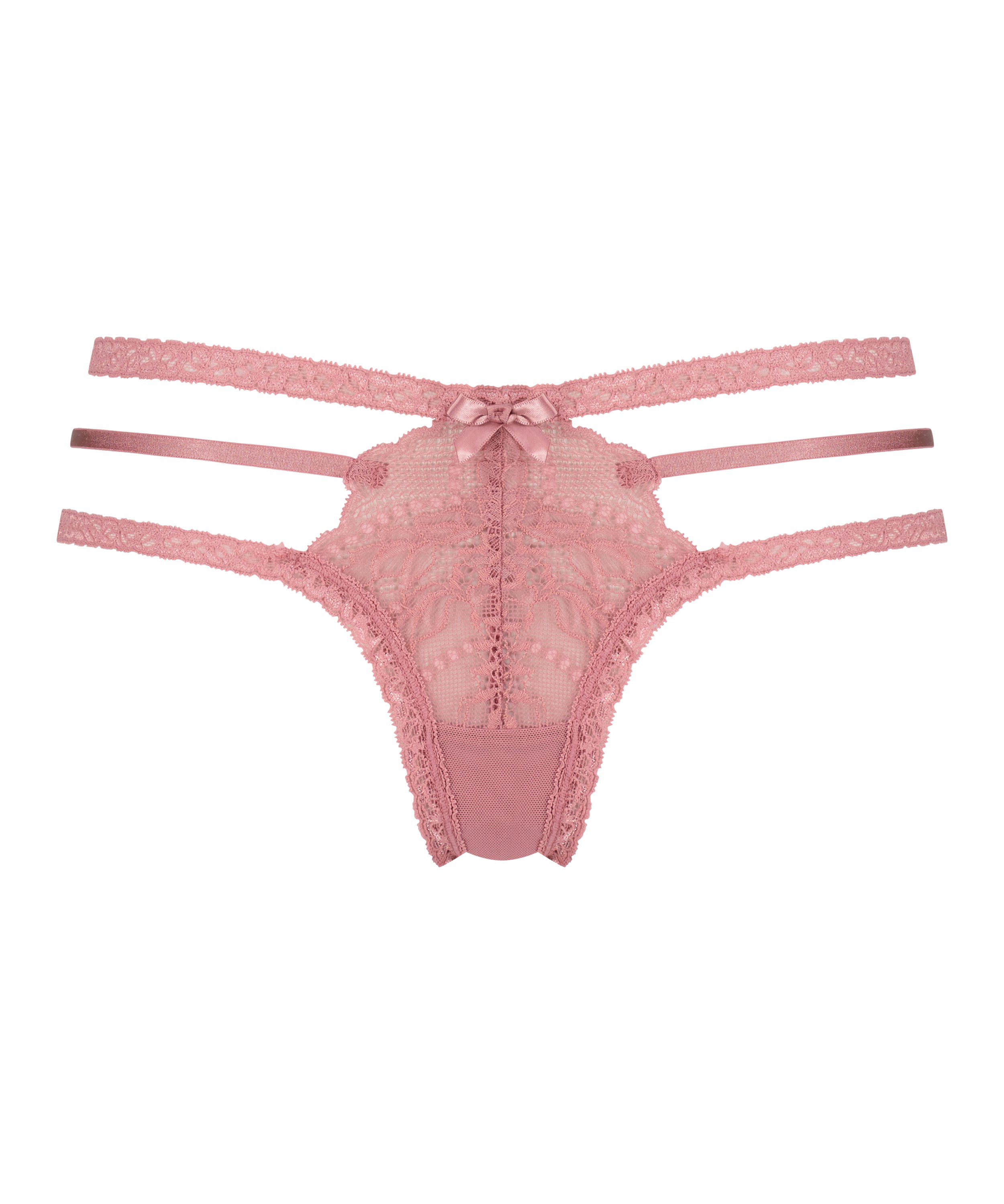 Show off in these stunning thongs! With a delicate but sexy lace look. With an added bow in the front and strappy details for an over-the-top sexy look. Get your hands on the matching bra to create your very own set!