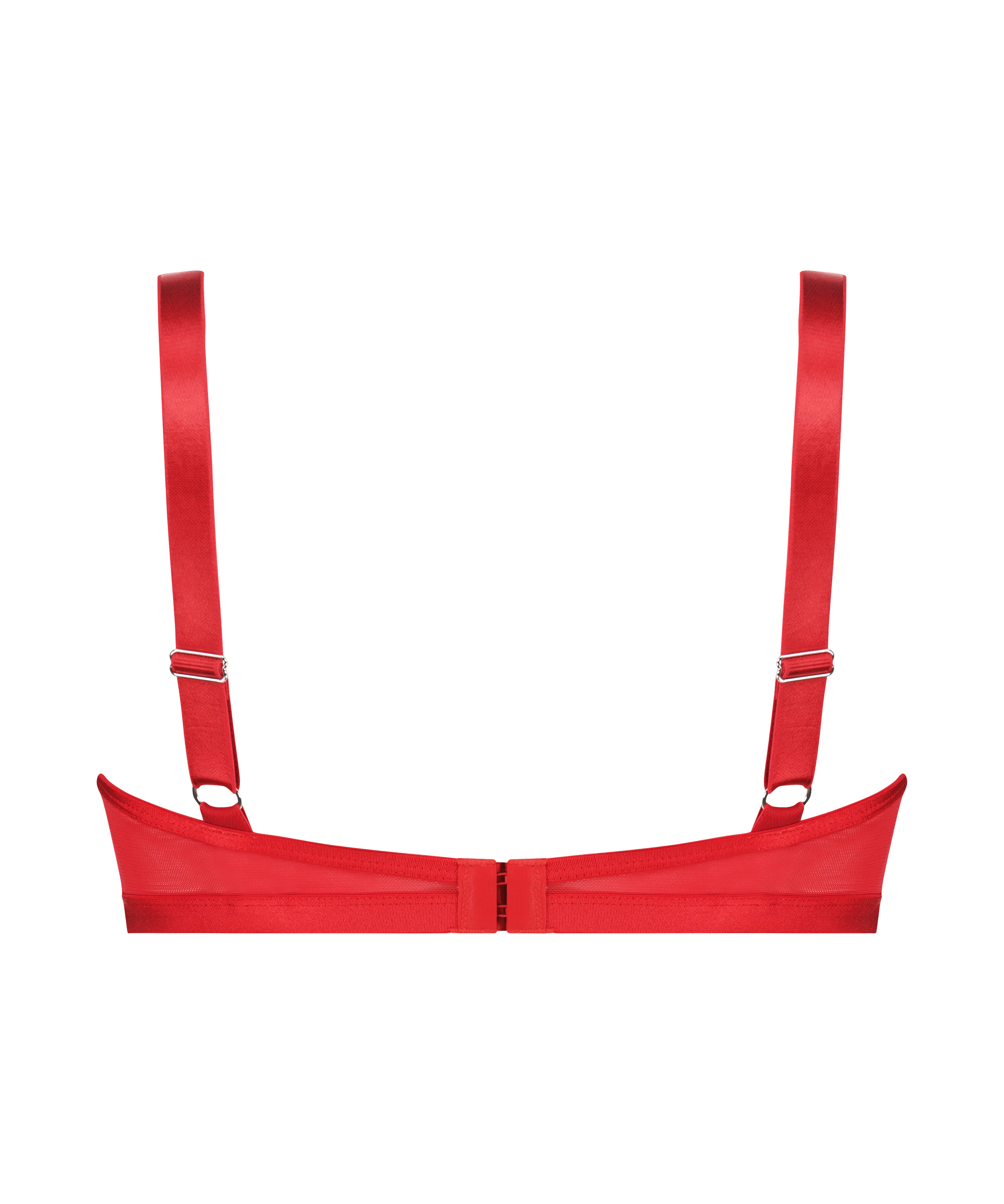 Don't miss out on this unique unpadded bra! With an all-over lace look on the high neck line. It is decorated with cut out and strappy details on the cups. The thick adjustable straps make for the most comfortable and perfect fit. Find the matching knickers to complete the set!