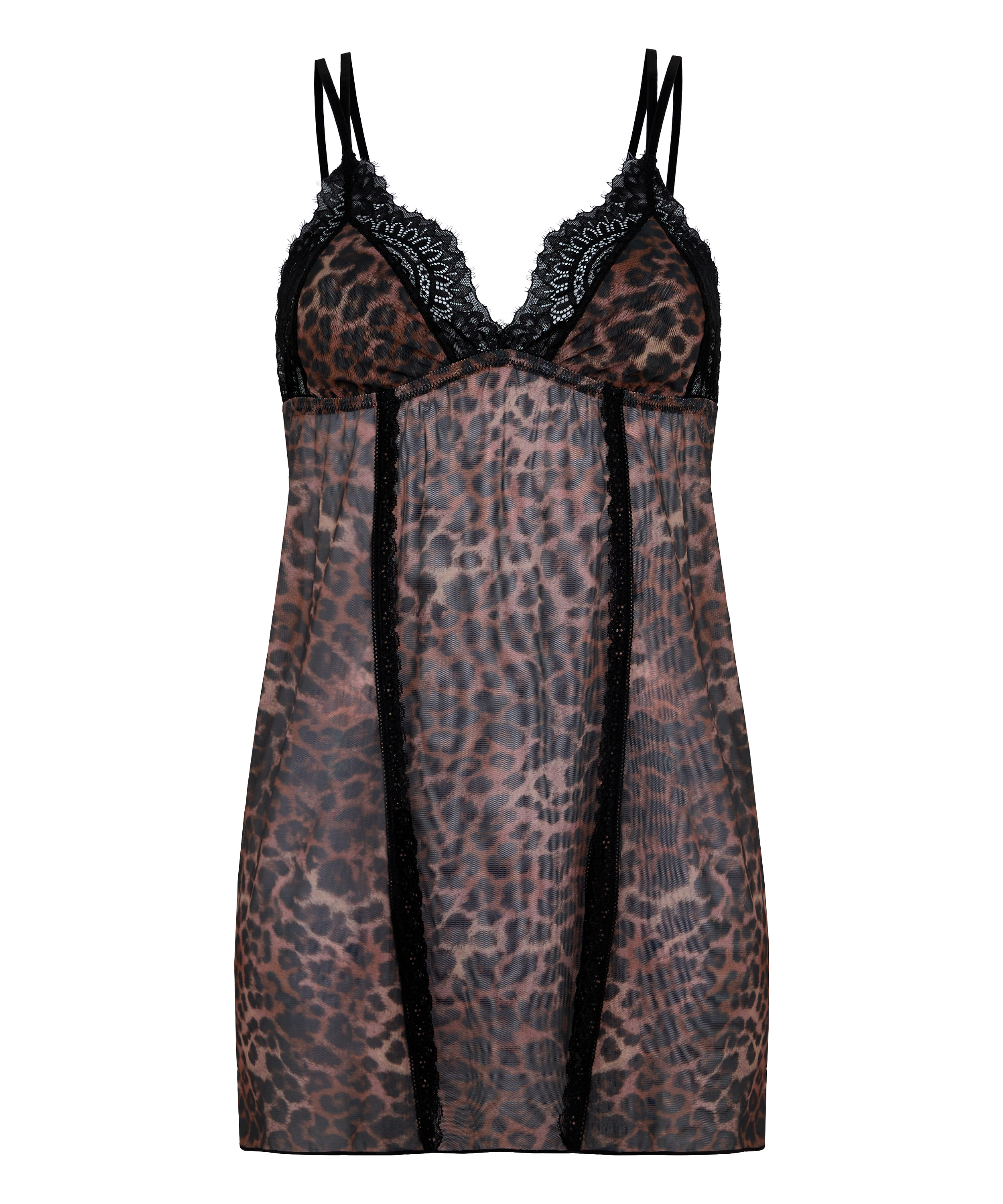 Unleash your wild side with this chic leopard babydoll! Crafted from airy mesh for a light, sensual feel, featuring delicate lace details, with this piece you will get a romantic look with an elegant twist. The elastic under-bust band will ensure you a flattering fit while the unwired and non-padded design give you natural comfort. With double adjustable straps this babydoll is ideal for those who love bold, feminine lingerie with a playful edge!