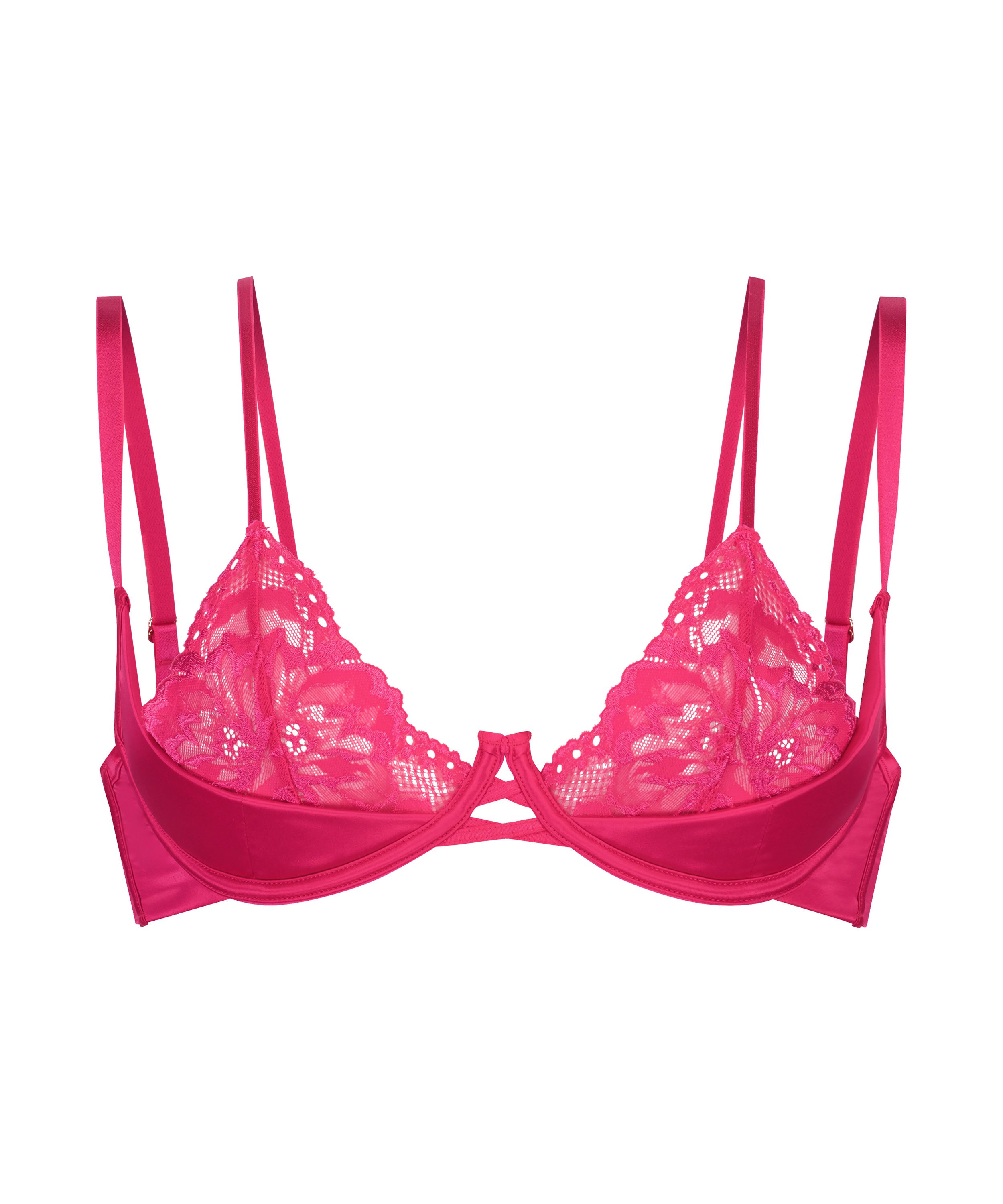 Go for an exciting lingerie set with this bra! With strappy straps and semi-transparent lace. It has semi-padded cups with underwired support. Part of the Private Collection!