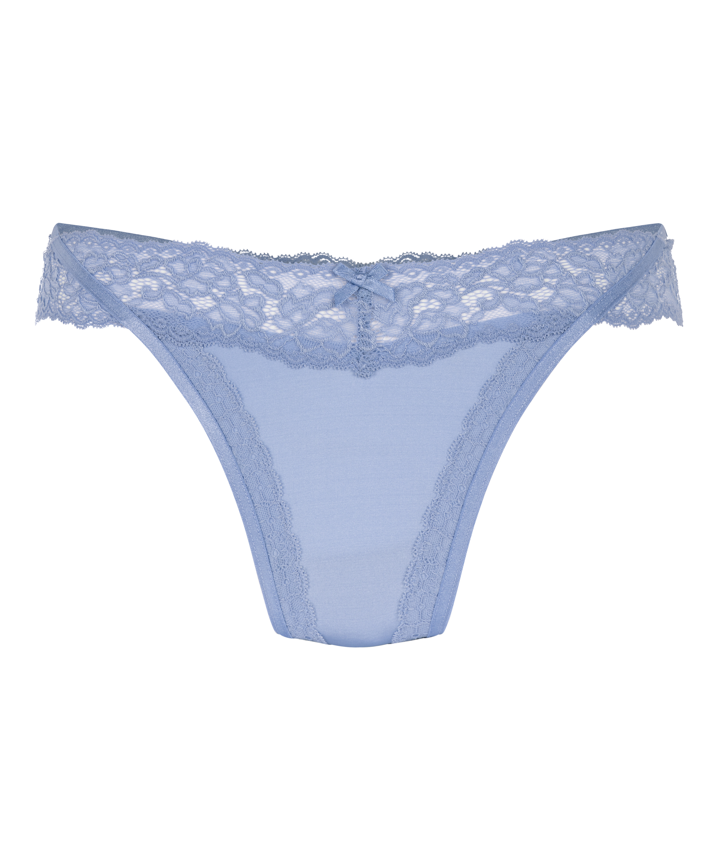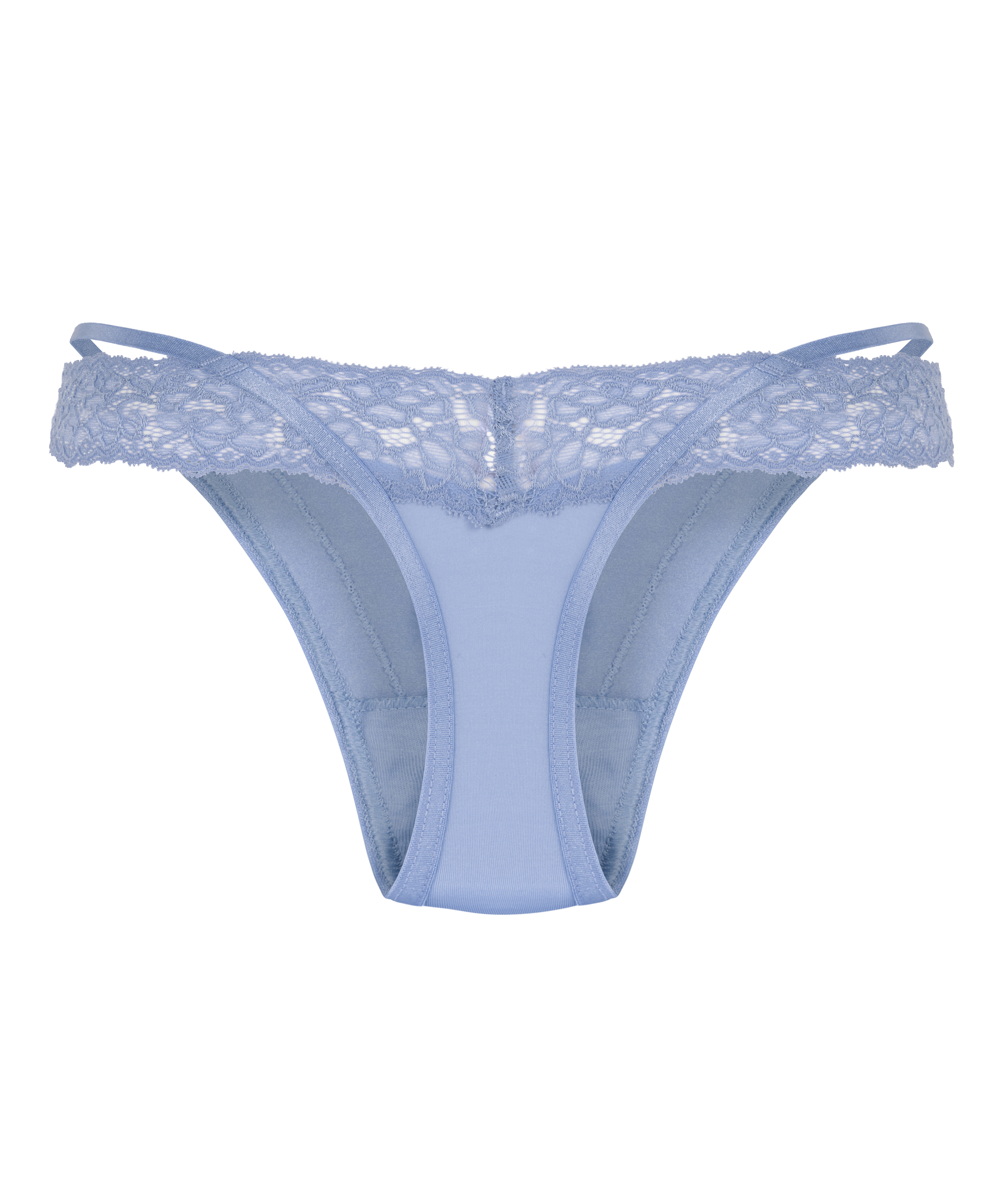 This extra low V thong has an extra fun twist! With strappy detailing and oodles of lace. Combine with a matching bralette or bra for a complete set.