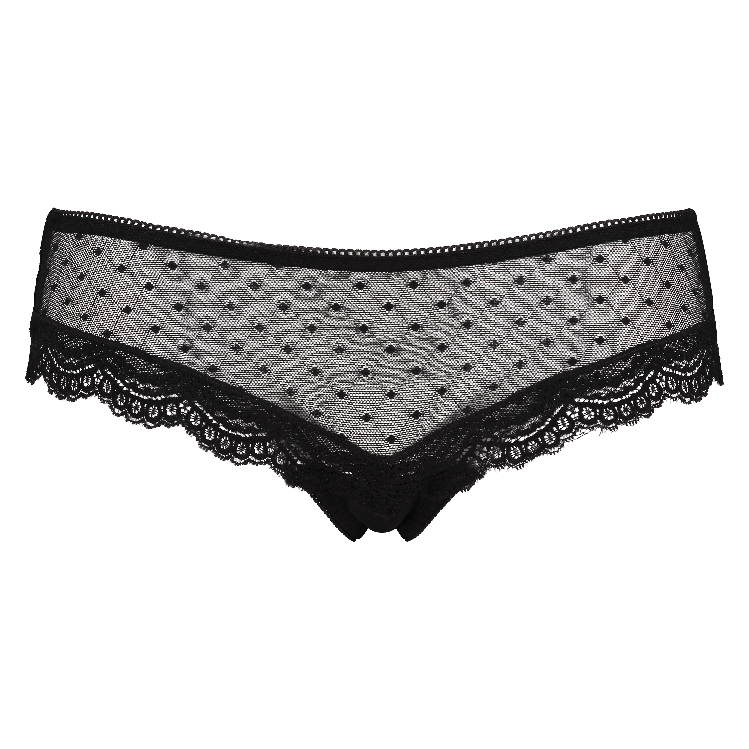 These sexy Brazilian knickers are made from mesh with an embroidered floral pattern at the bottom.