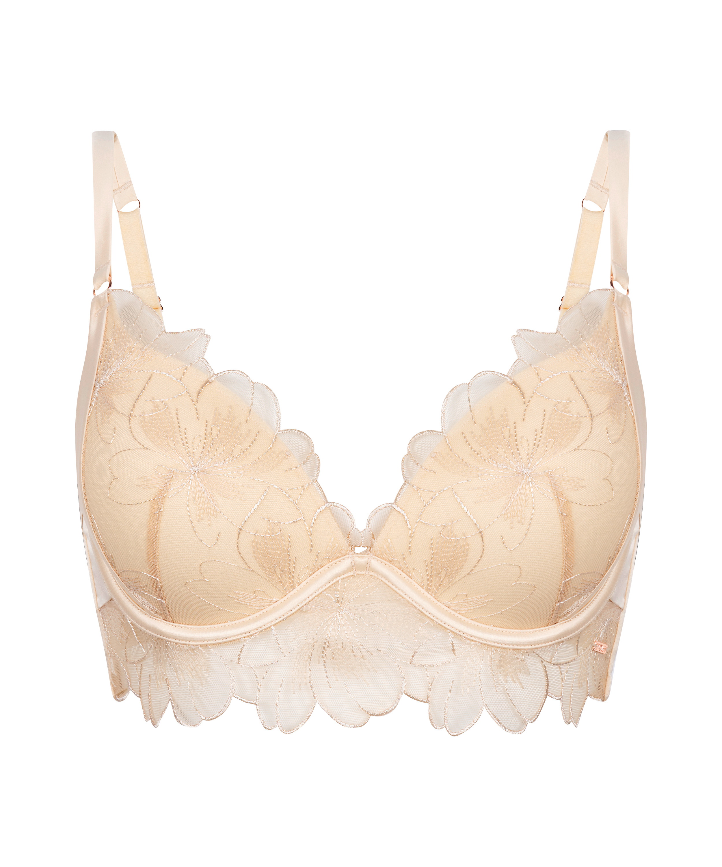 Elevate your lingerie collection with the Emilia Padded Plunge Push-Up longline bra! Featuring delicate floral embroidery and a structured design, it offers a sculpted, flattering fit. The padded underwired cups and adjustable straps ensure support and comfort, perfect for a look that exudes confidence and charm!