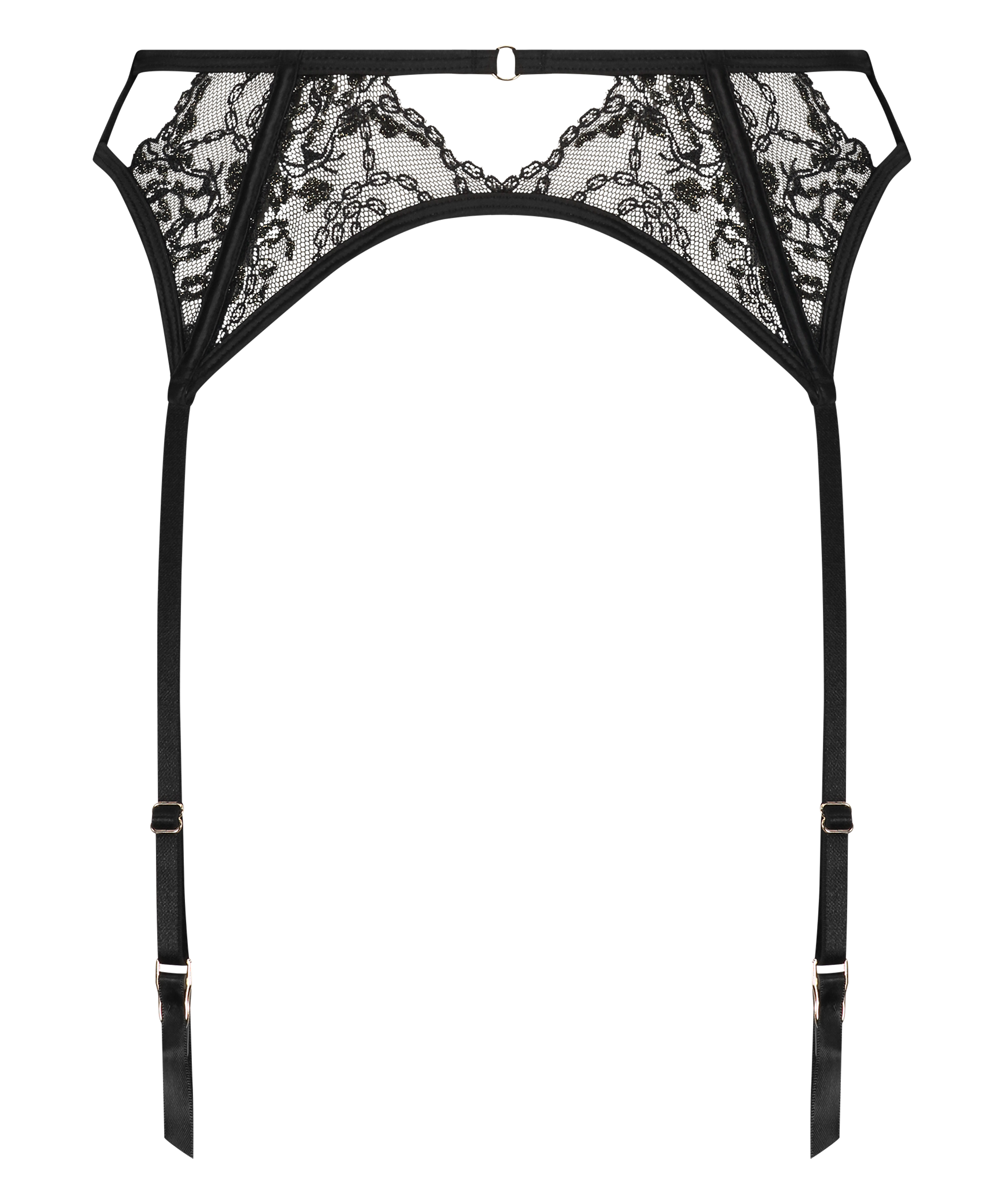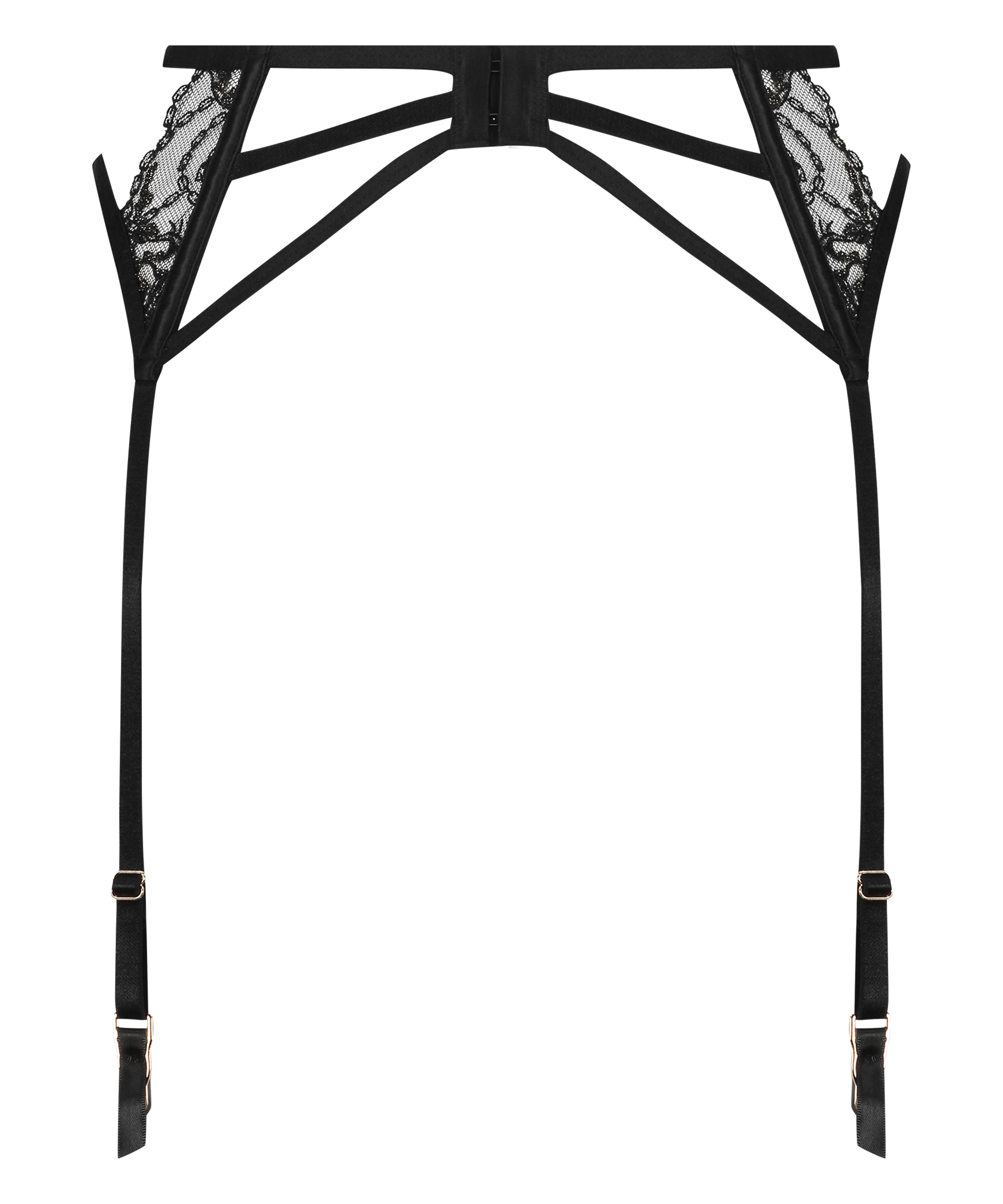 Suspenders add an extra sexy touch to your outfit. These suspenders feature strapping and lace. Wear with a nice pair of stockings. From our Private collection.
