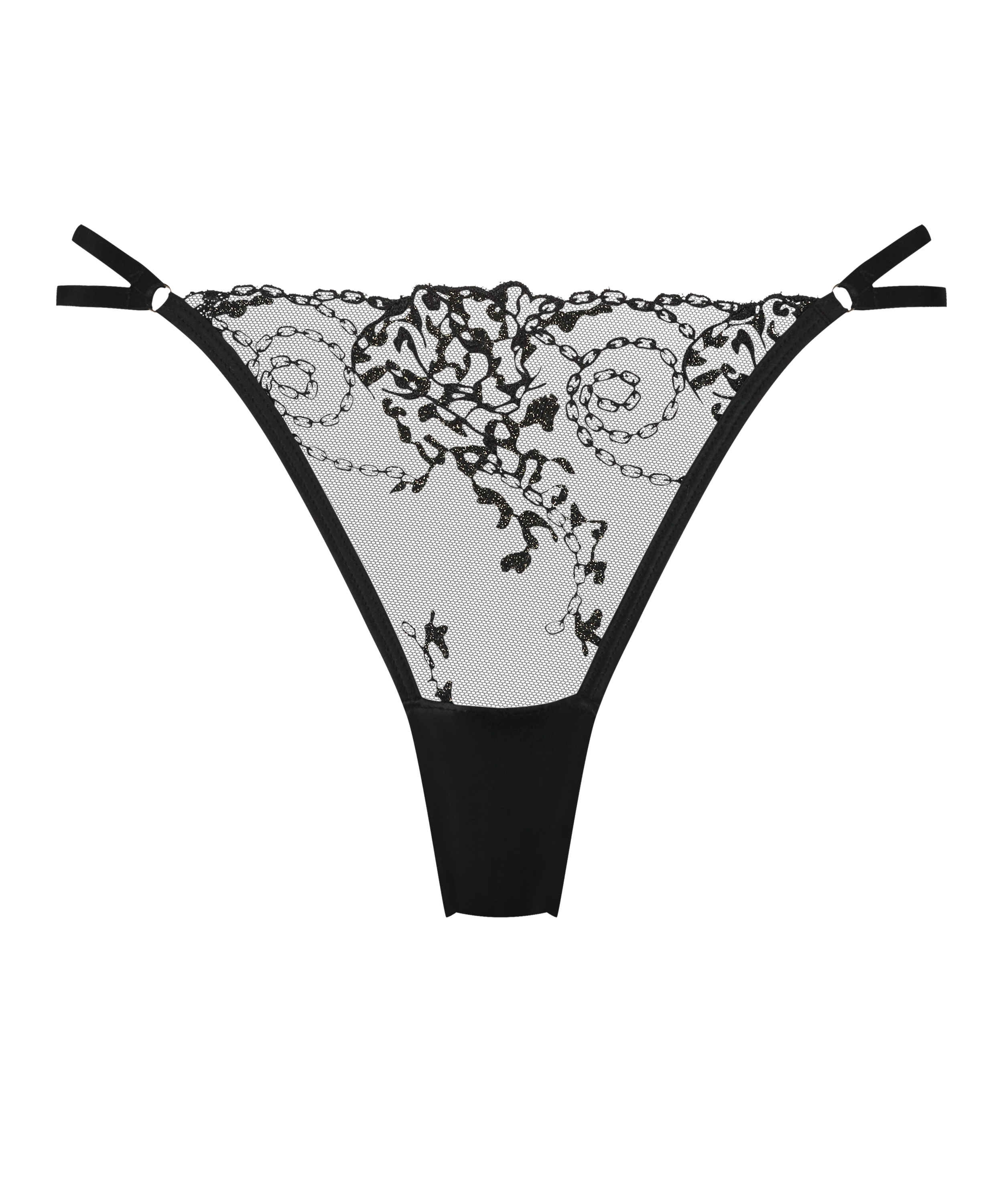 Embrace your sensuality with this sexy thong! It has a lace cut out design in the front and back, and an additional strap to improve the look. Mix this with one of our beautiful bras!