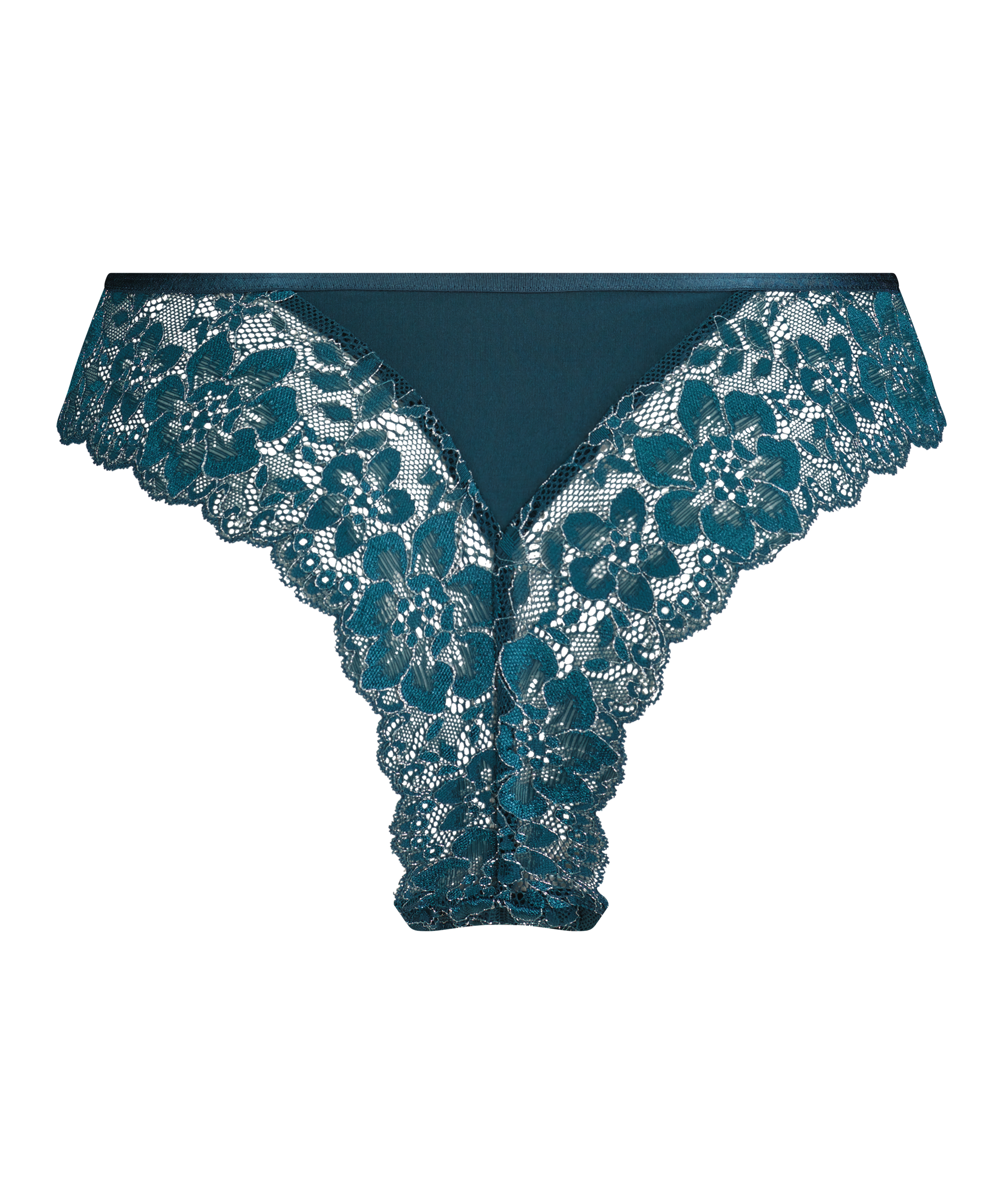 Feel elegant in this brazilian! The slip is almost fully covered in lace and has a nice little bow on the front to give it a cute look. Combine it with your favourite bra.