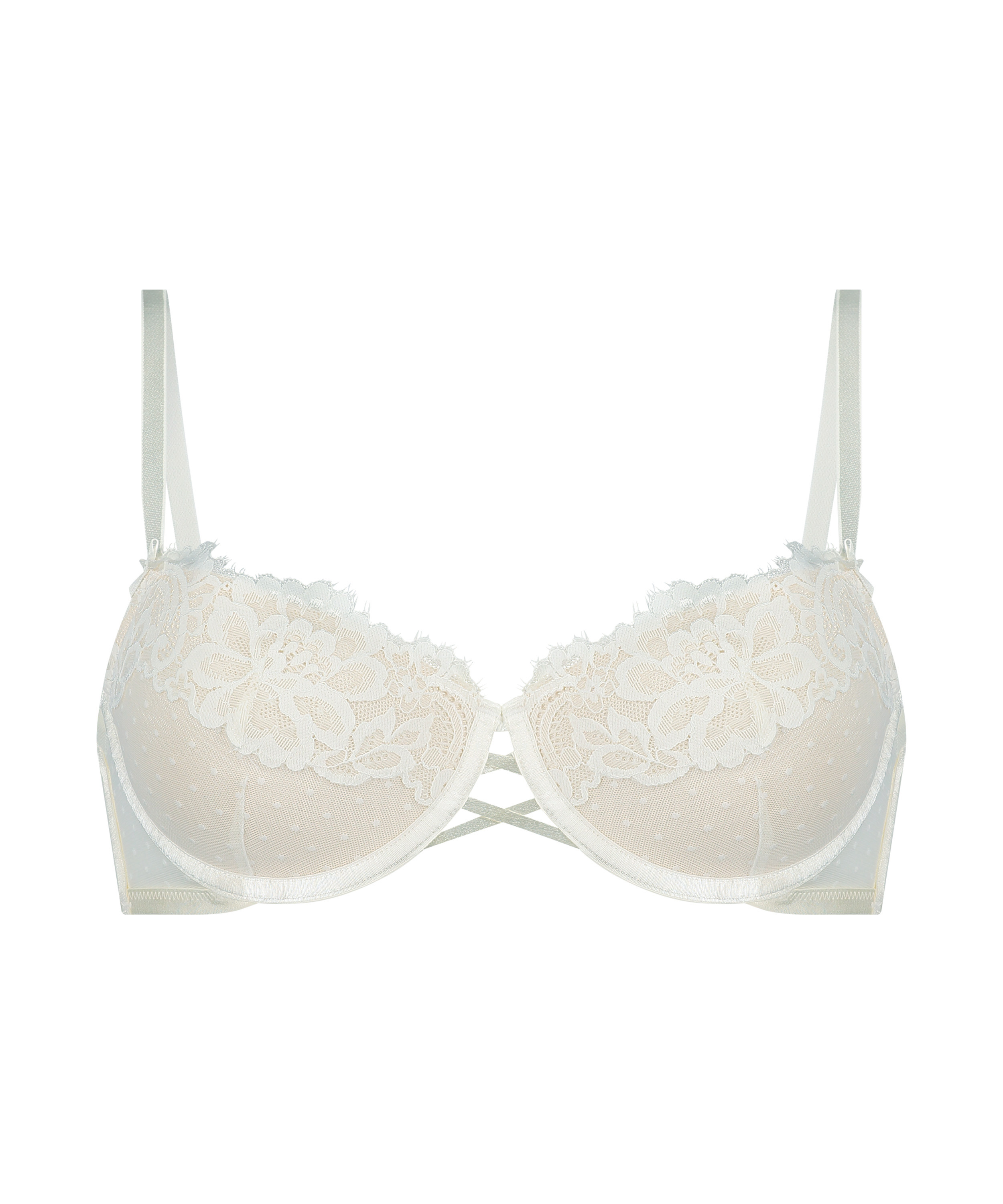 Savor the essence of sensuality with our Harmony bra! Luxuriously padded cups decorated in delicate lace fabric, coupled with an enticing strappy detail between them, evoke irresistible charm. Elevate your ensemble by coordinating with the matching knickers, giving confidence and charm at every turn!