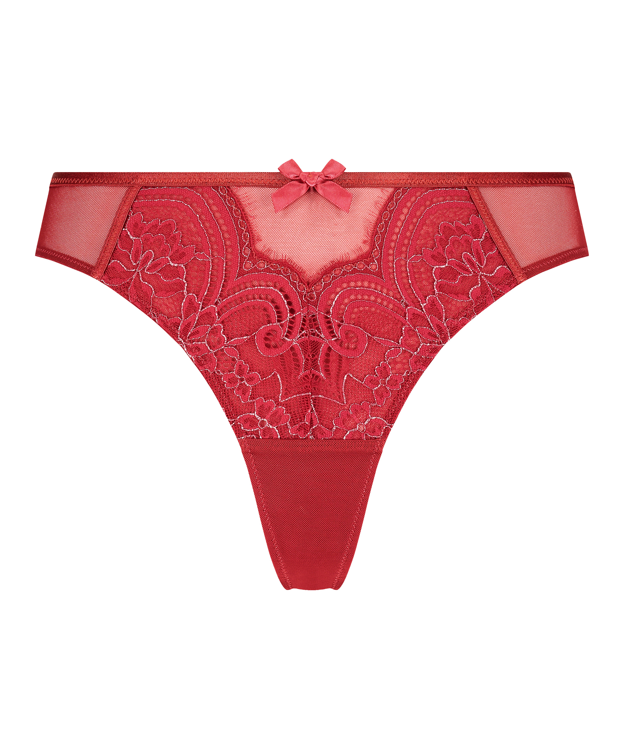 Feel romantic in this gorgeous thong! With a frontal lurex design. Extra comfortable material on the crotch. They are semi-transparent, fully completed with a mesh material. Finished off with a cute bow on the front. Complete the set with the matching bra!