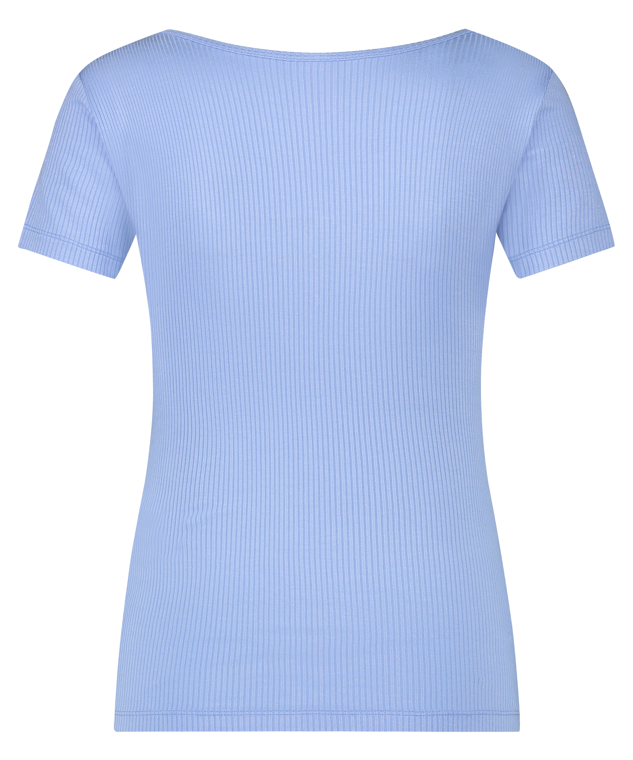 This top is perfect in warmer weather. This loose-fitting top has a round neck. It also has pretty ribbed detailing. Combine with matching bottoms.