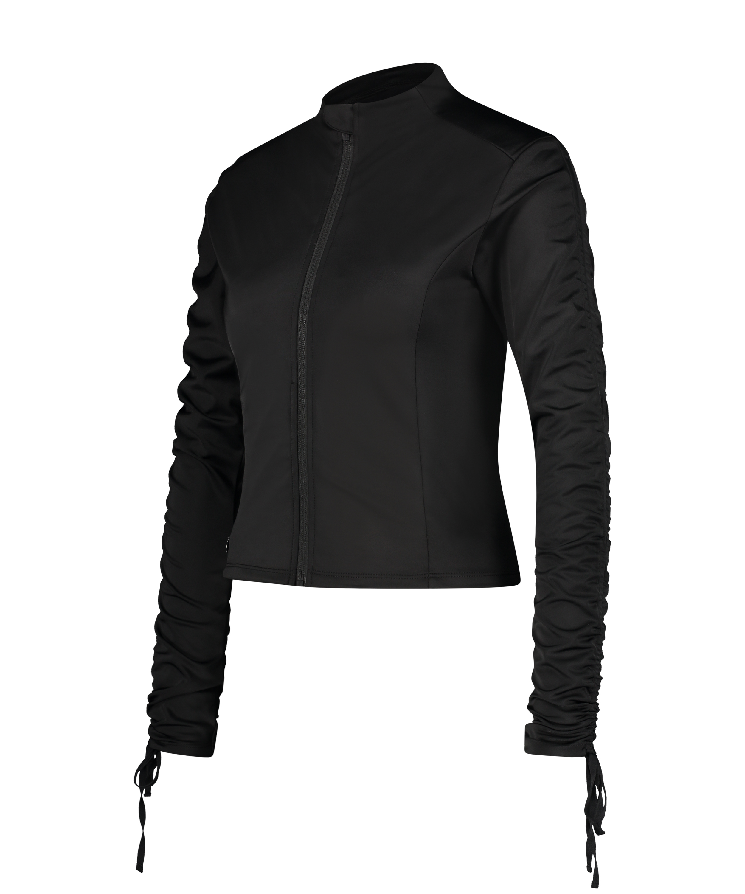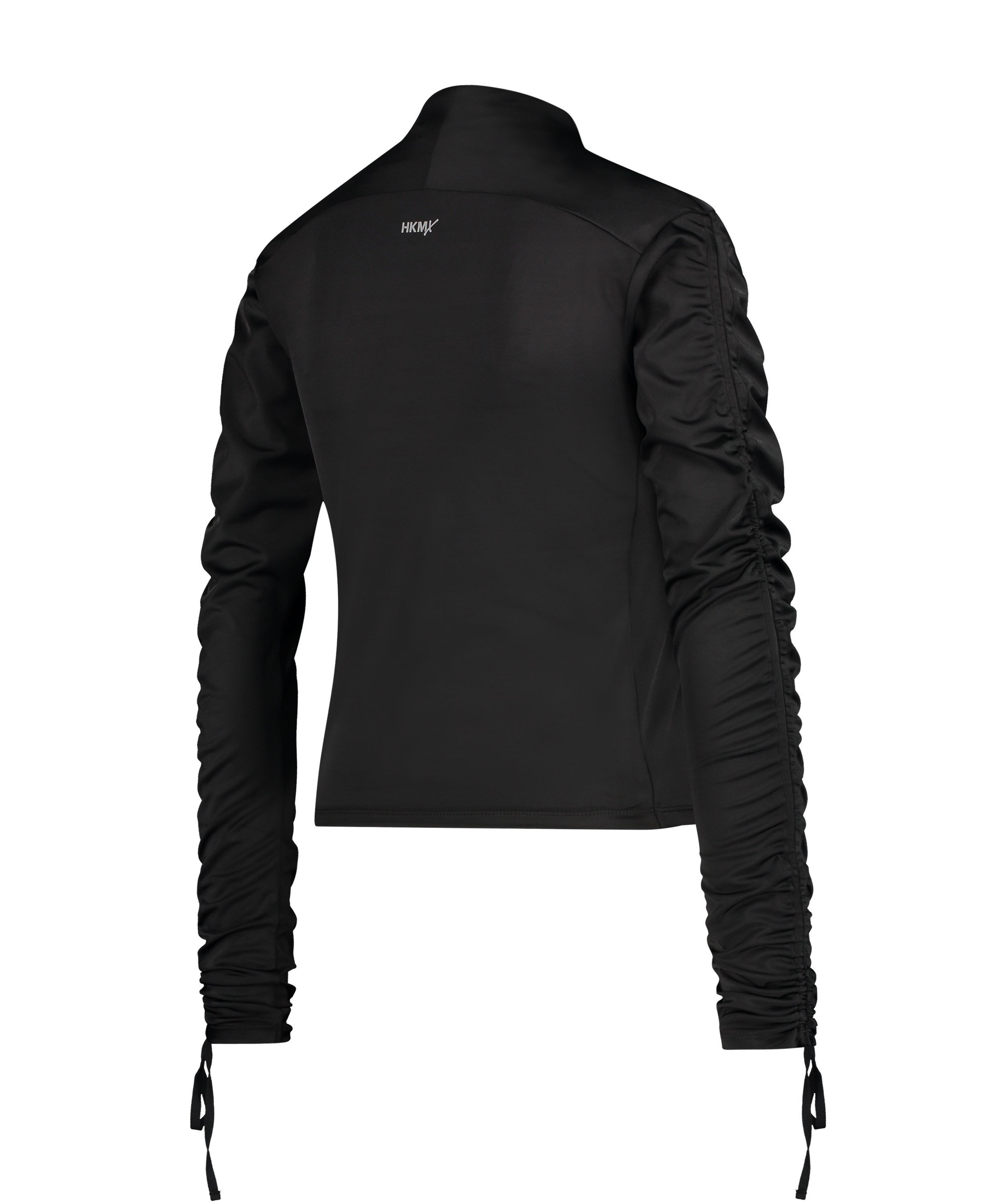Zip up and concentrate on your goals in this fun sporty ruffle jacket! It has a drawstring in the sleeves to create a fun ruffle effect. Combine with other HKMX items for a complete sports outfit.
