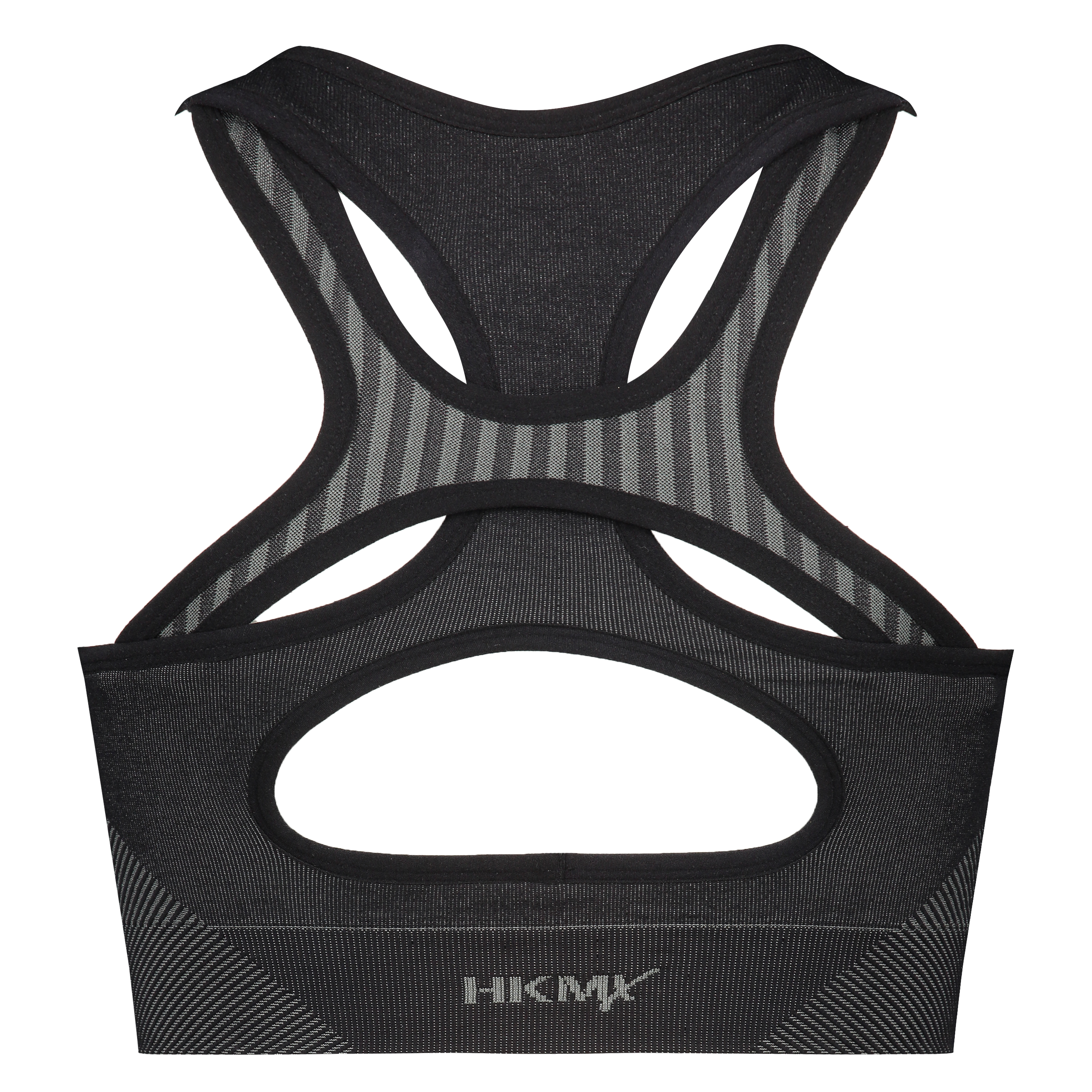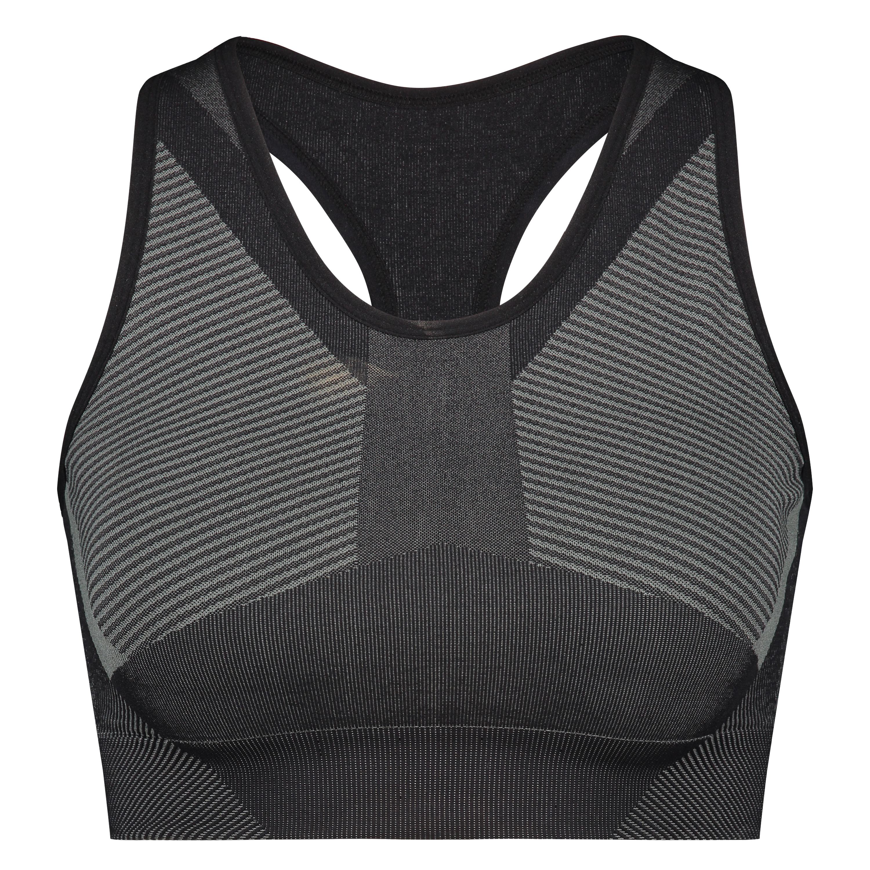 This seamless sports bra will complete your look at the gym! The sports bra has detailing on the back as well as removable cups. It will give you extra support during a fitness workout at the gym. Combine with the matching leggings for a complete look! Made of 55% recycled Polyamide.