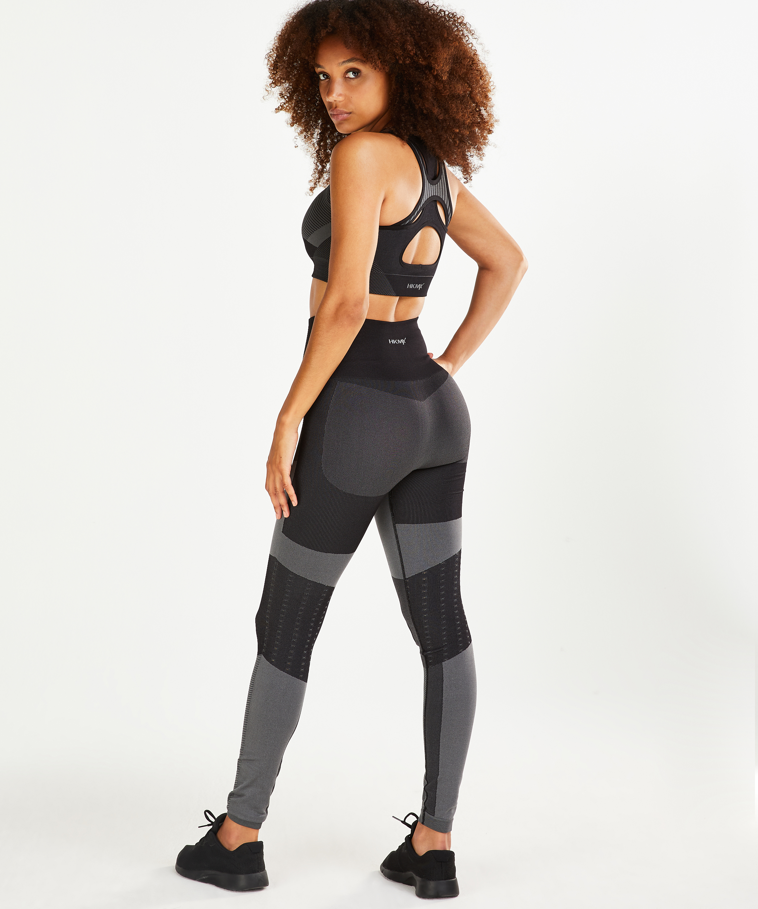 We adore these seamless sports leggings! These colour block leggings are high-waisted and give plenty of support during your workout. The leggings have a shaping, bum-sculpting effect. Combine with the matching sports bra for a complete gym look! Made of 55% recycled Polyamide.