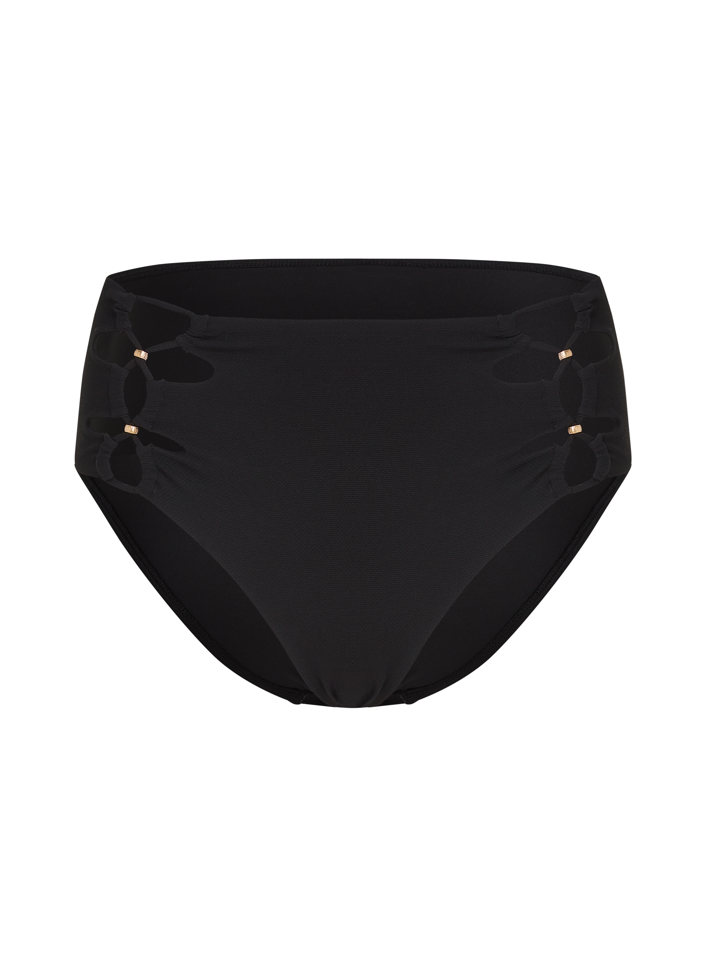 Step into retro glamour with our gorgeous high waist bikini bottom! This vintage-inspired piece features a flattering high-rise waistline that hugs your figure in all the right places. The delicate lace design on the sides adds a touch of femininity, embellished with luxurious gold-coloured beads. Pair it with your favourite bikini top for a timeless and elegant look!