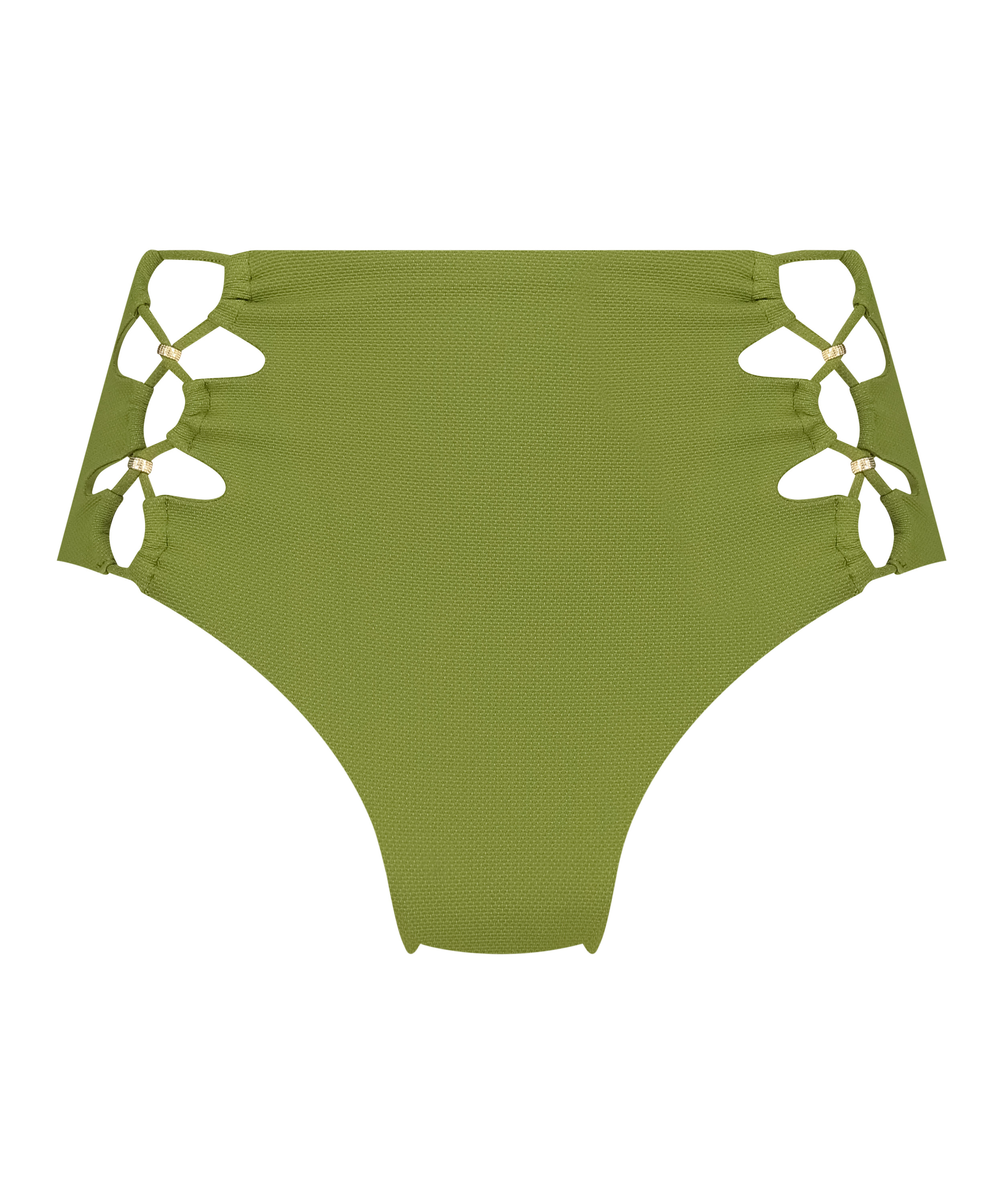 Step into retro glamour with our gorgeous high waist bikini bottom! This vintage-inspired piece features a flattering high-rise waistline that hugs your figure in all the right places. The delicate lace design on the sides adds a touch of femininity, embellished with luxurious gold-coloured beads. Pair it with your favourite bikini top for a timeless and elegant look!