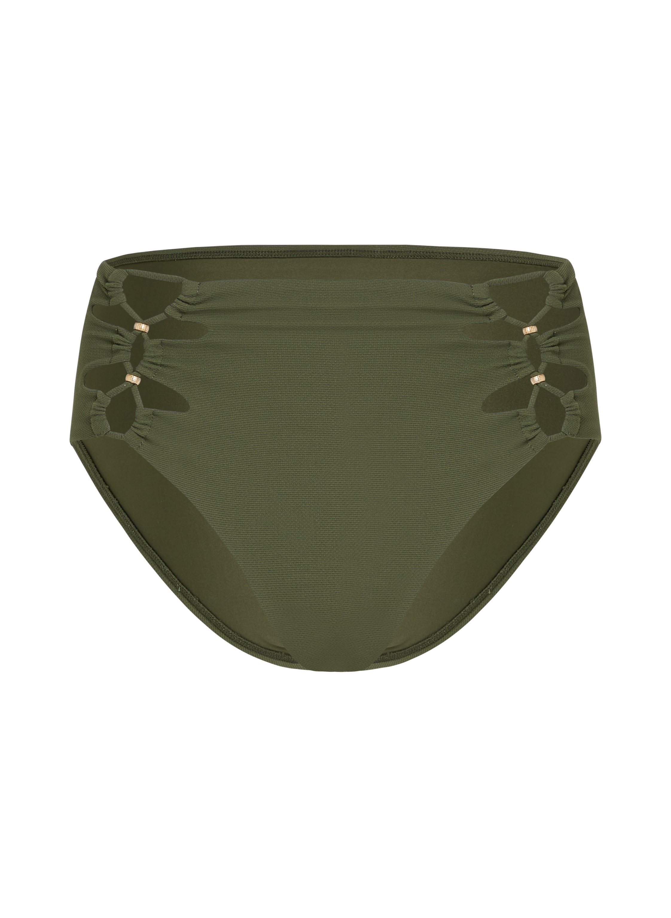 Step into retro glamour with our gorgeous high waist bikini bottom! This vintage-inspired piece features a flattering high-rise waistline that hugs your figure in all the right places. The delicate lace design on the sides adds a touch of femininity, embellished with luxurious gold-coloured beads. Pair it with your favourite bikini top for a timeless and elegant look!