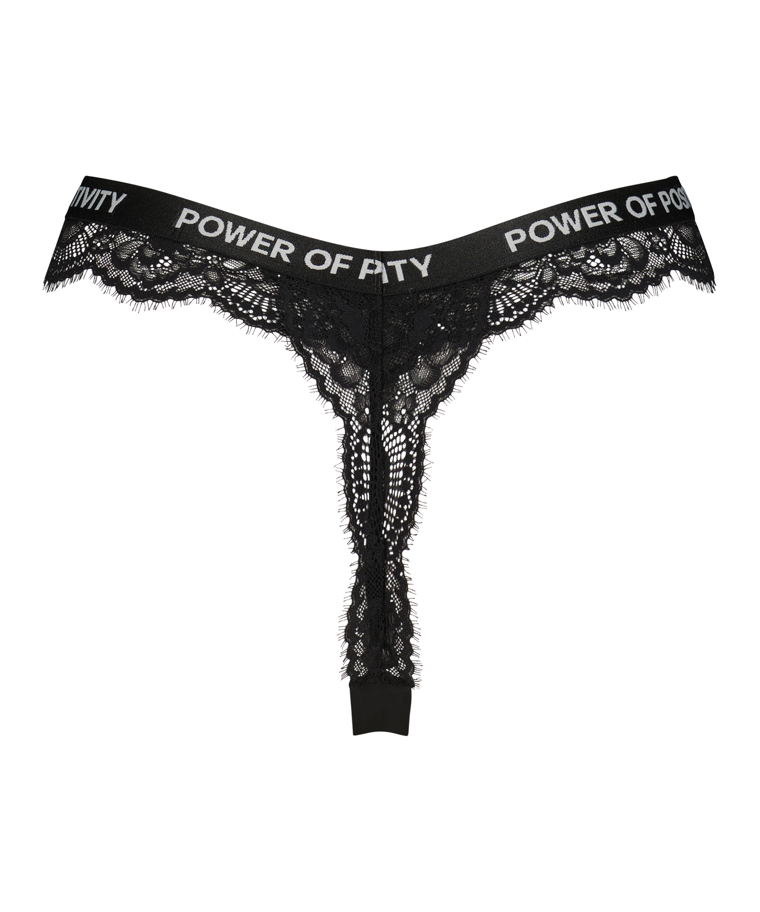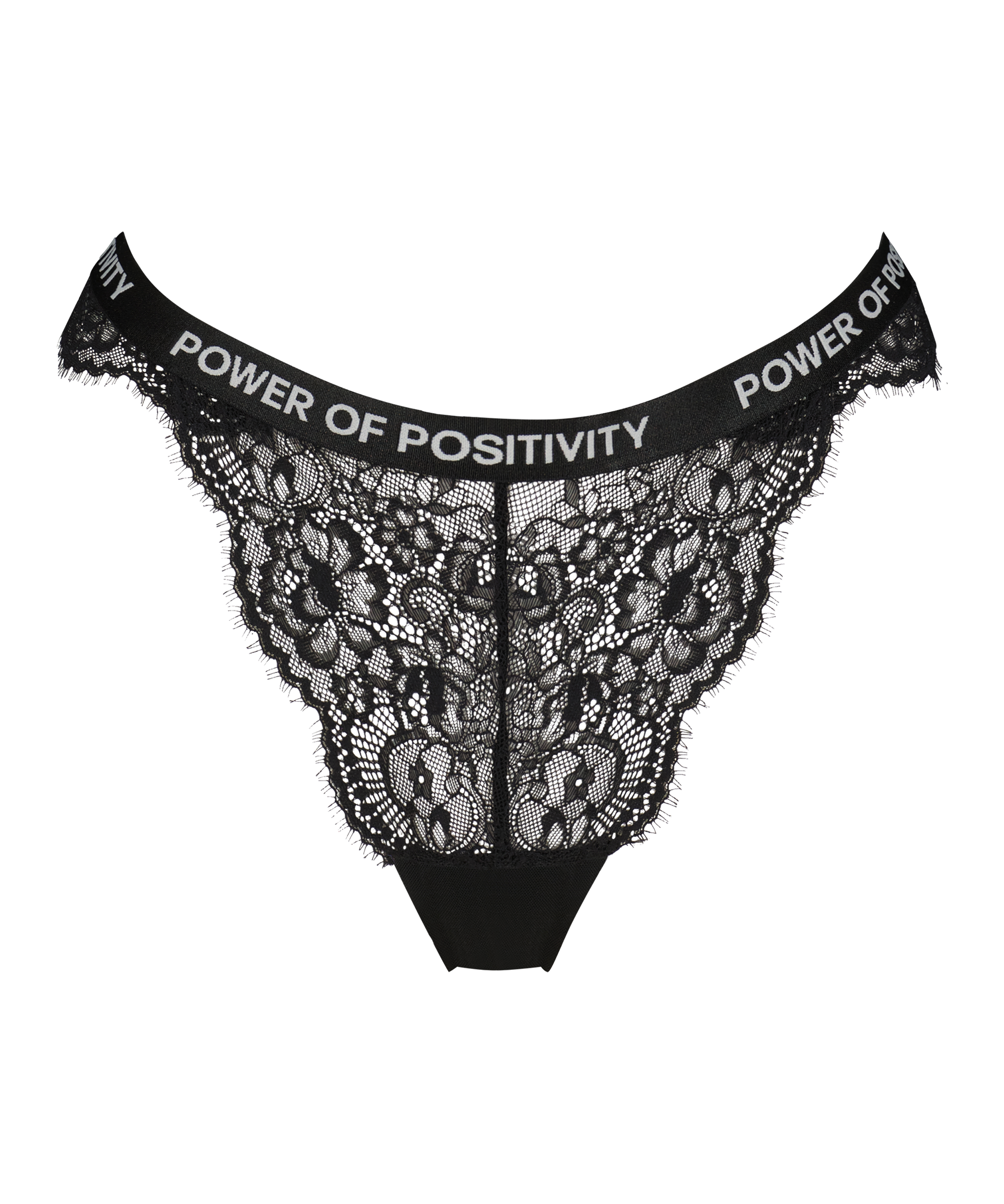 You'll look super sexy in this thong! Trimmed in luscious lace. Combine with the matching items for a complete look! Part of our P.O.P. Power of Positivity Collection. An inspiring and energetic "think positive" attitude. Power Of Positivity embraces self-worth, diversity and a conscious lifestyle.